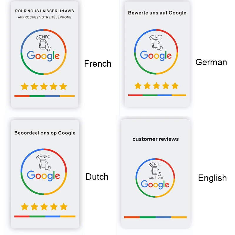 Espagnol allemand français néerlandais anglais NFC cartes d'évaluation Google Android/IPhone tap URL écriture cartes d'évaluation de visite sociale