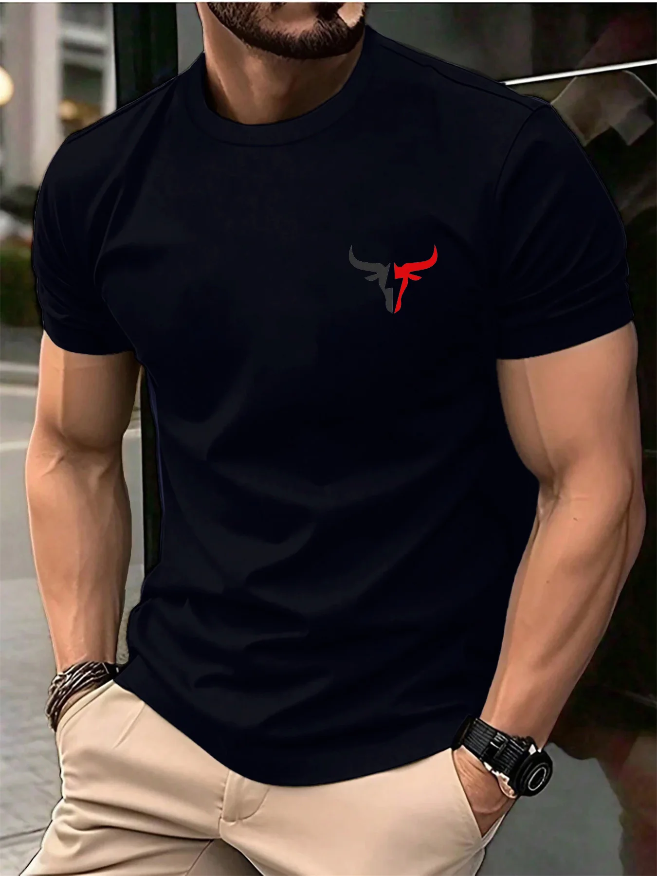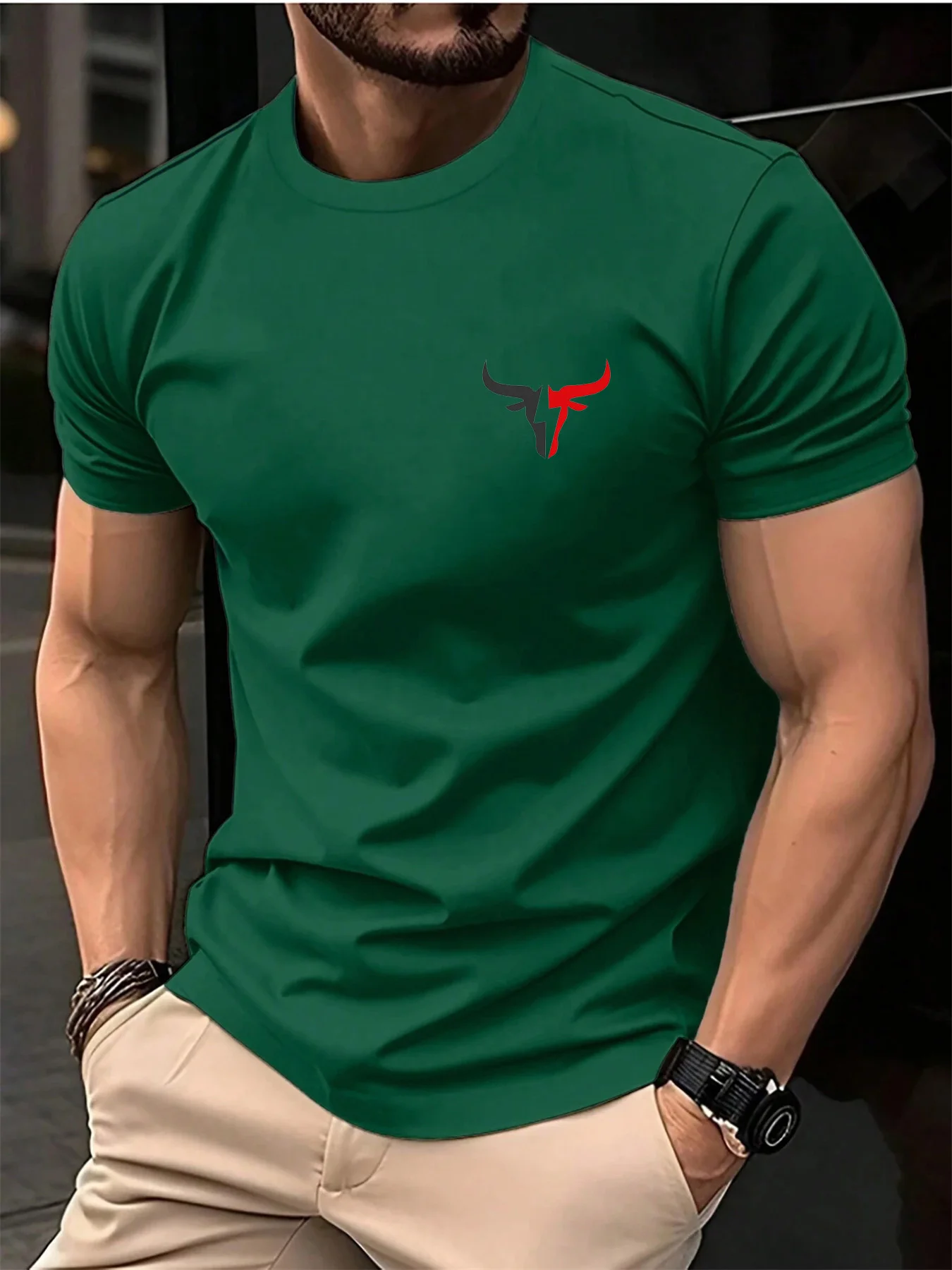 Été hommes 100 coton décontracté ample grande taille motif de taureau imprimé sport confortable col rond à manches courtes T-shirt haut