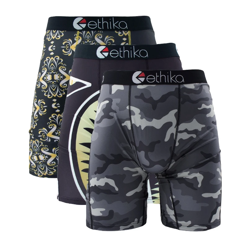 ETHIKA 3 pièces Sexy hommes sous-vêtements boxeurs respirant homme caleçons S-3XL grande taille hommes troncs hommes culottes Lingeries Boxer slips