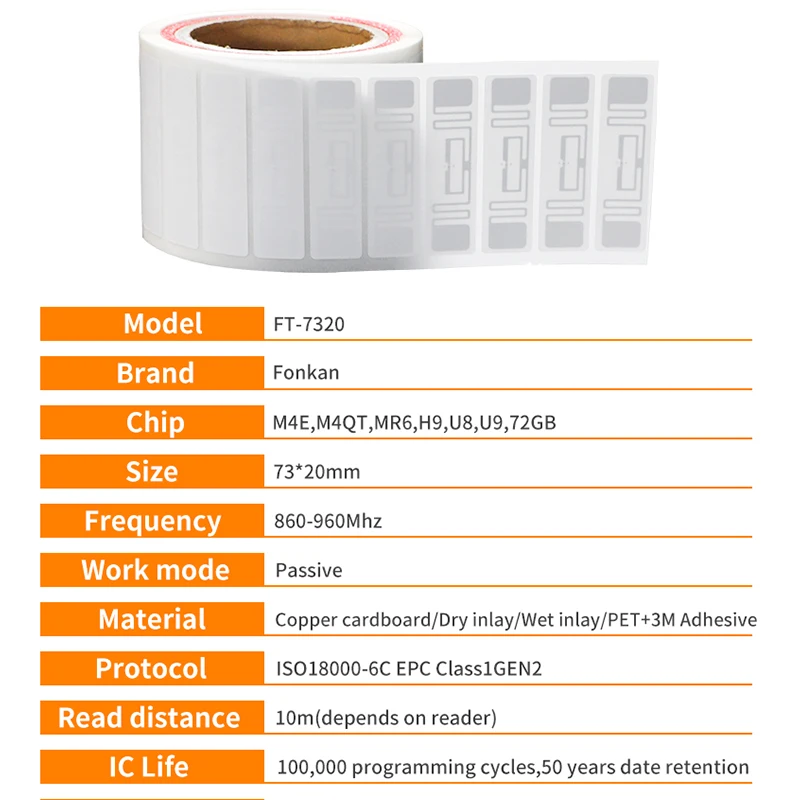 Étiquette UHF à portée de lecture de 10M, étiquette auto-adhésive RFID passive 73x20mm, étiquettes RFID UHF pour la gestion des stocks