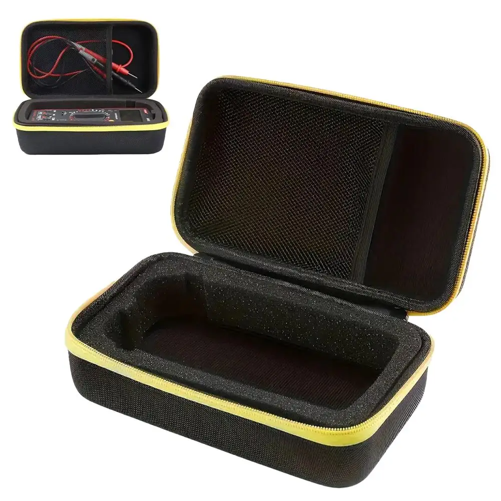 2.Organisation interne intelligente : Conçu pour l'efficacité, le compartiment principal est doté d'un insert en mousse découpé avec précision, parfaitement dimensionné pour des articles tels qu'un multimètre ou un démarreur de voiture compact.Une poche supplémentaire en filet sur le couvercle offre un rangement pratique pour les câbles, les sondes, les pinces ou autres accessoires essentiels, permettant de tout garder bien organisé.