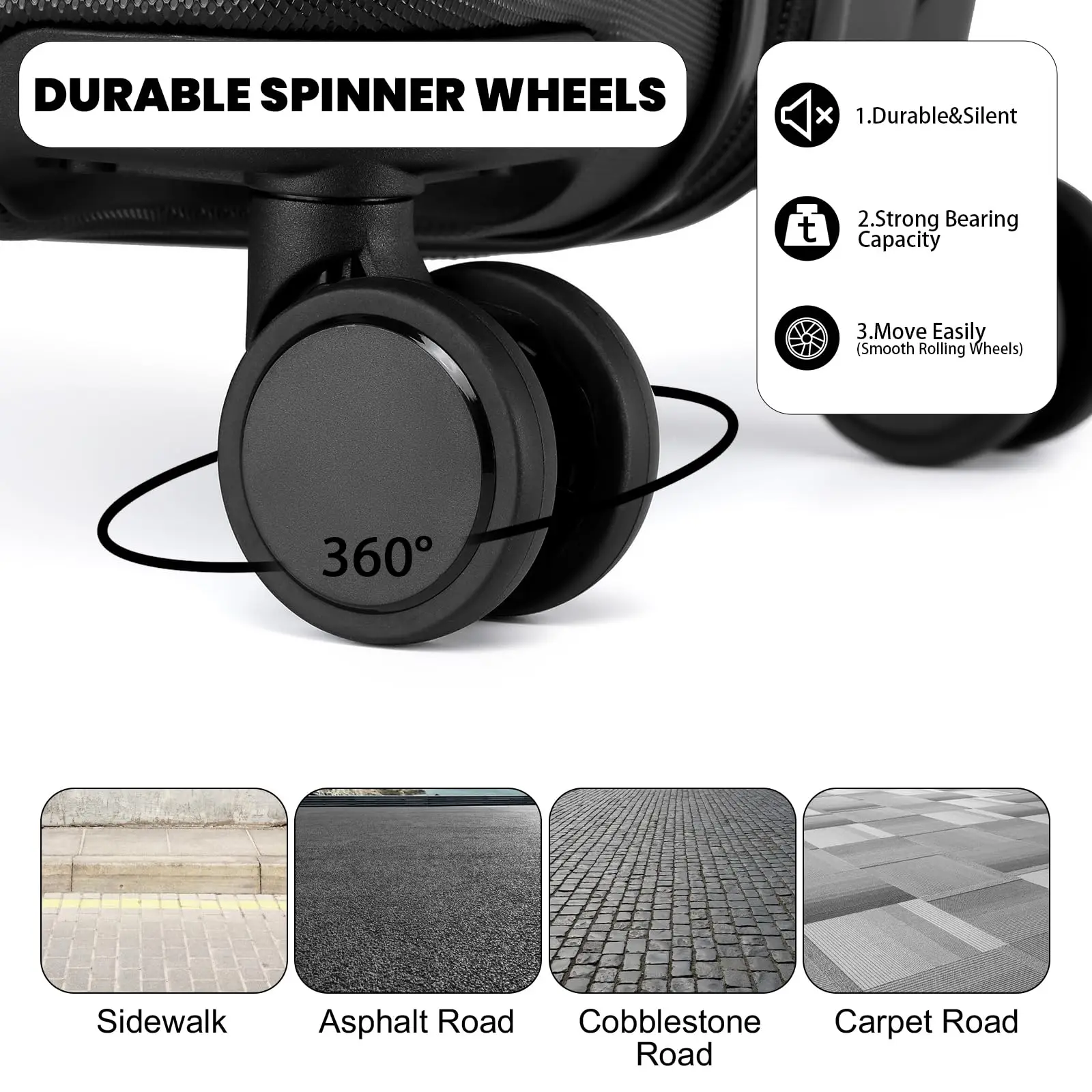 L'étui est livré avec un verrou TSA à 3 chiffres et une fermeture éclair robuste et lisse pour ranger vos affaires en toute sécurité.Les 4 silencieux, 360° Les roues rotatives TPE ont été testées intensément et offrent une maniabilité exceptionnelle afin que vos voyages dans le monde entier soient confortables et sans effort.
