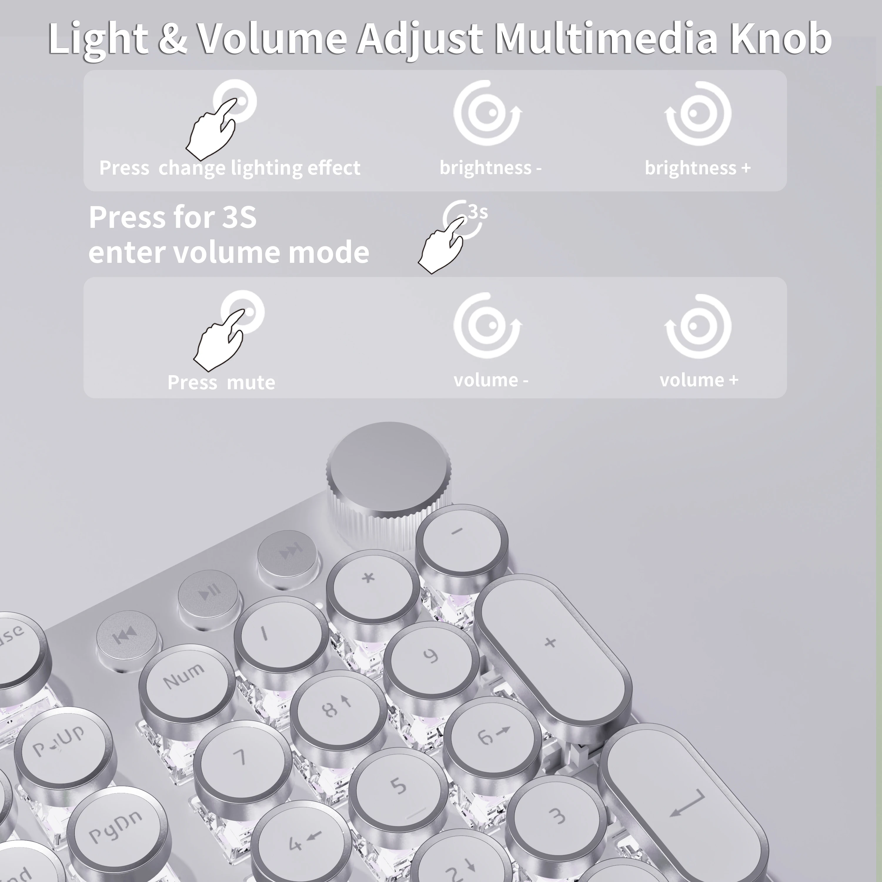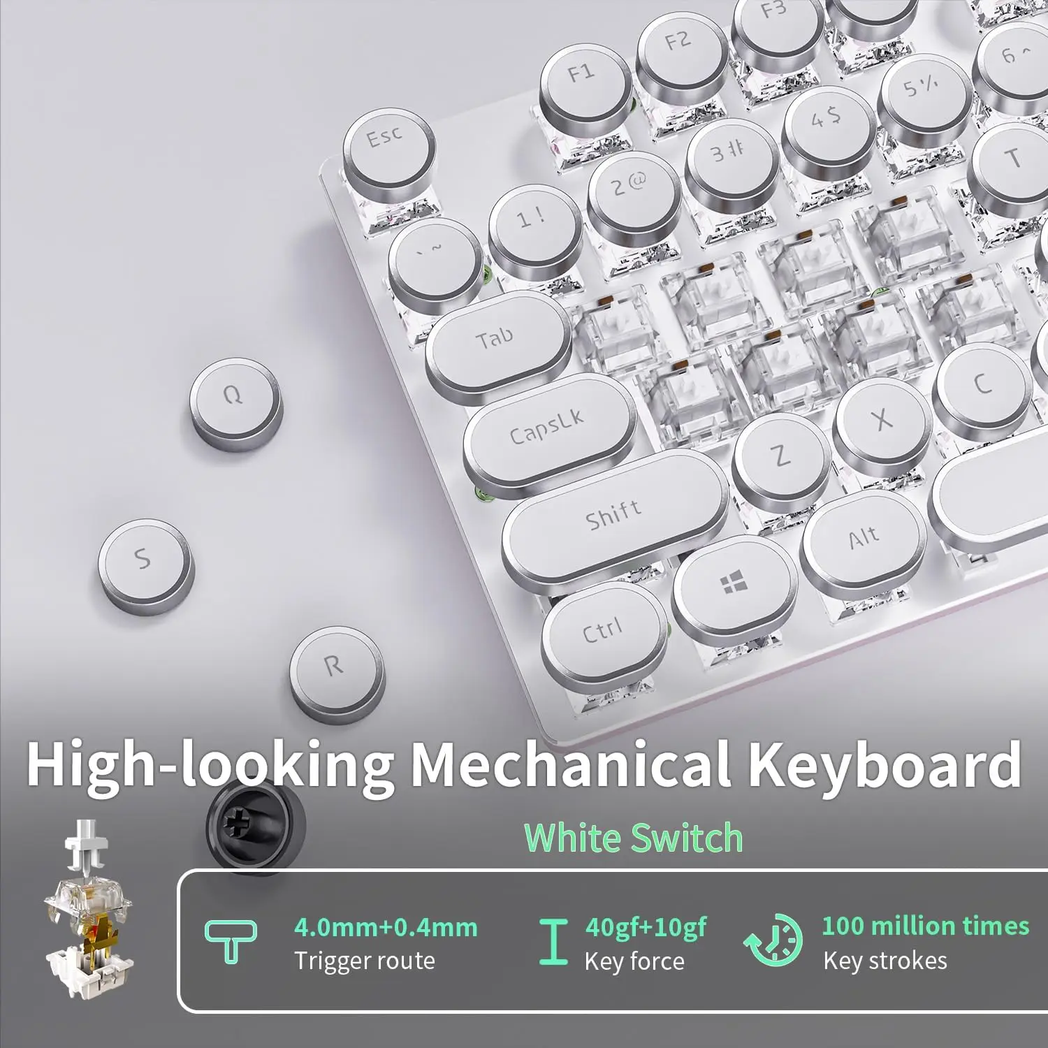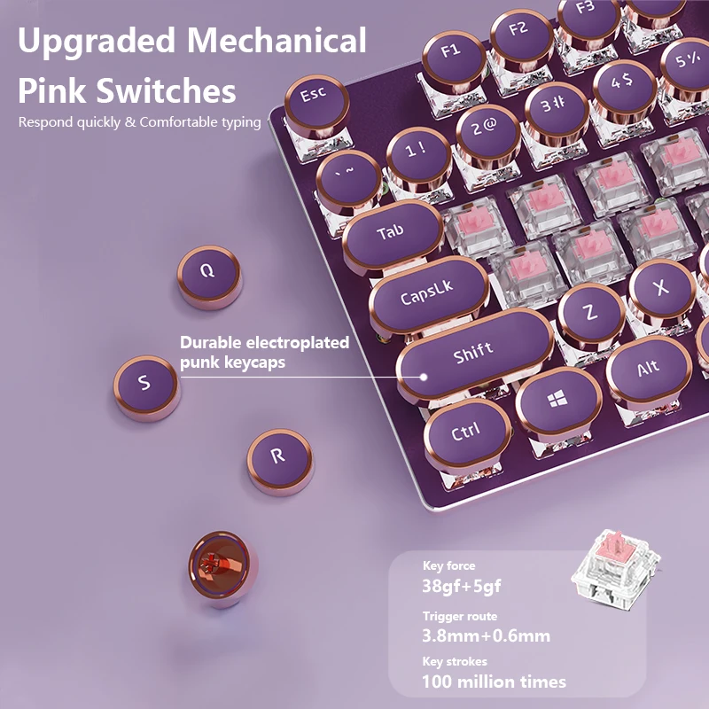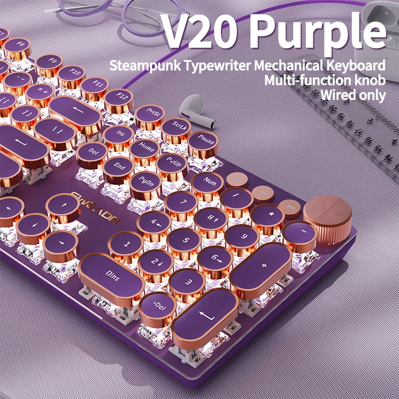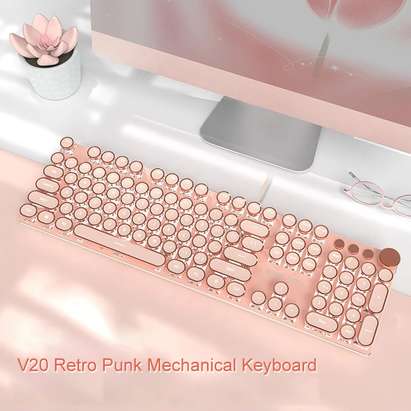 EWEADN Clavier mécanique filaire, style machine à écrire rétro blanc, pleine taille, rétroéclairage LED, bouton de commande, ergonomique pour le bureau et