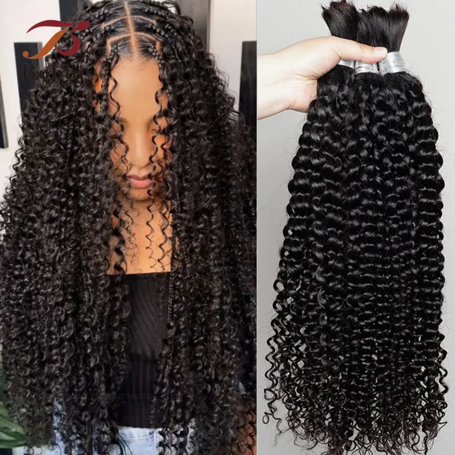 Extensions de cheveux 100% humains pour tressage, lot de 1, caution Curly Black, Indian Remy, Boho Braiding, Bobbi
