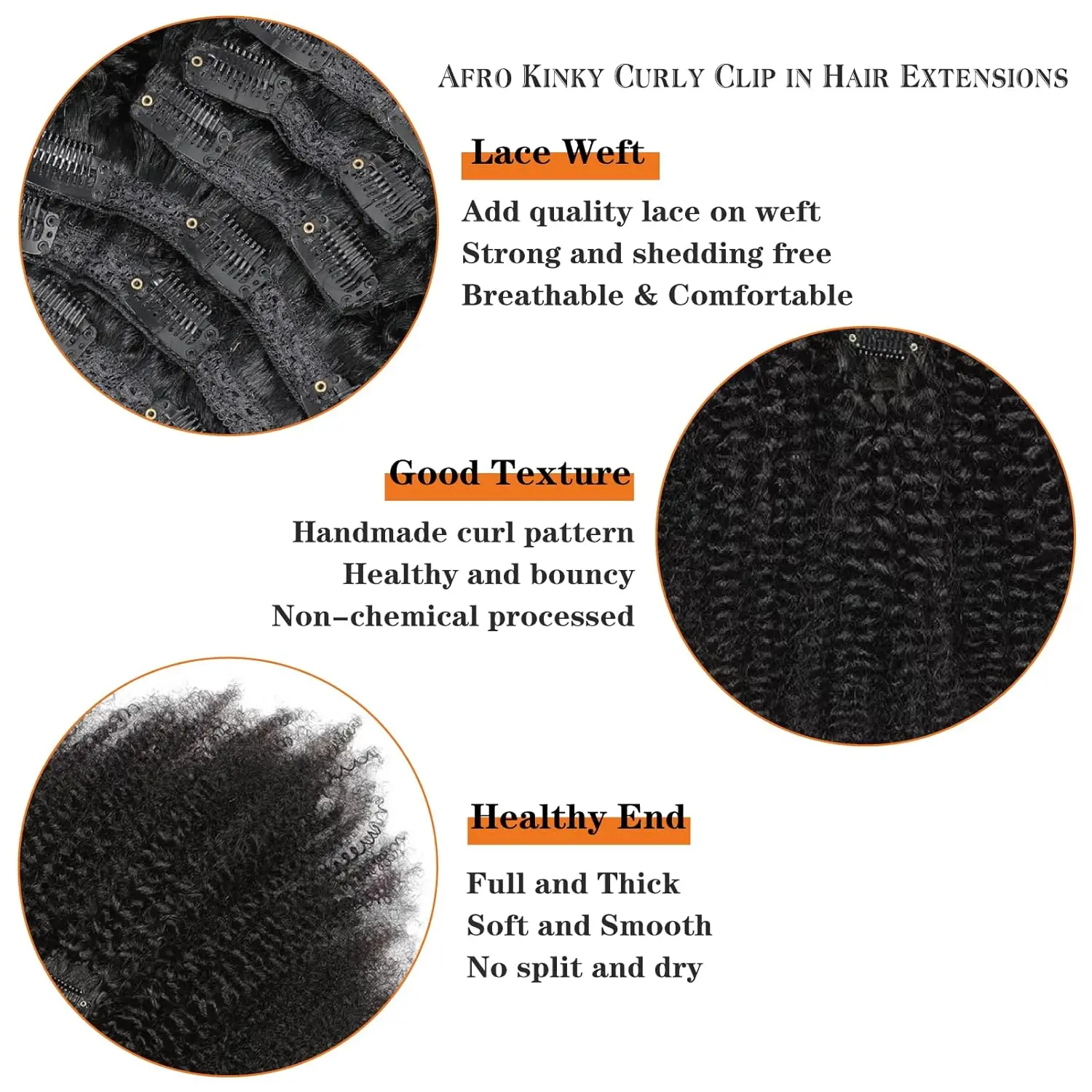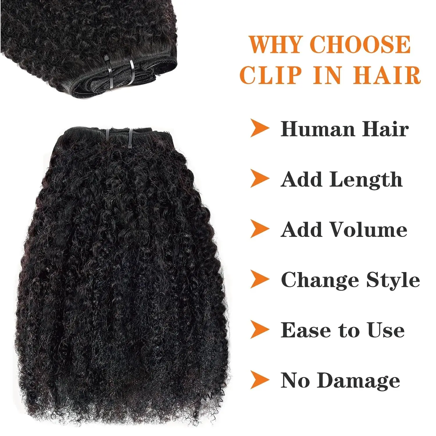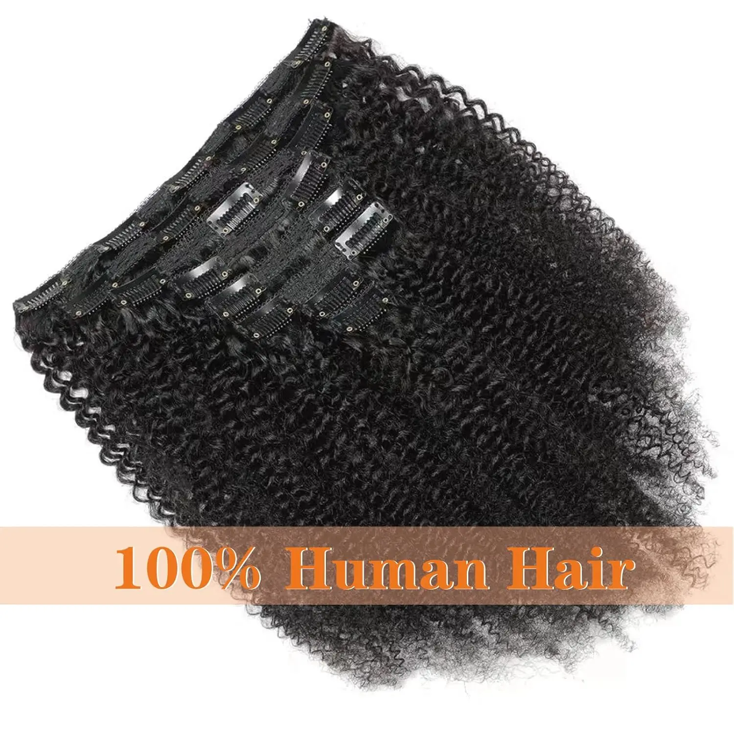 Extensions de cheveux Afro crépus bouclés à clipser 4B 4C vrais cheveux humains brésiliens Remy Clips en cheveux Afro pour femmes Extensions de cheveux
