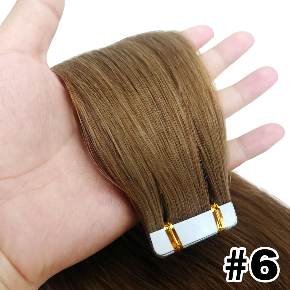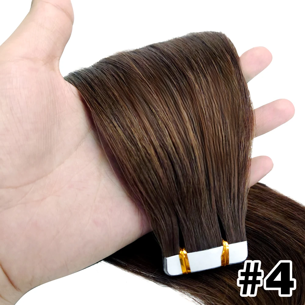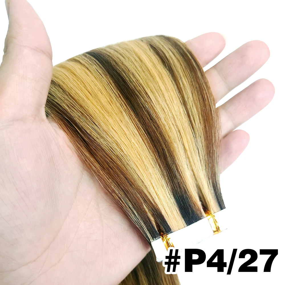 Extensions de cheveux naturels lisses en soie, bande Invisible sans couture, couleur P4/27, 20 pièces, pour femmes