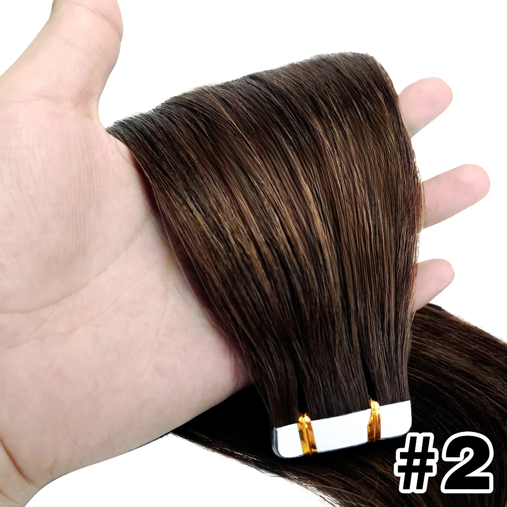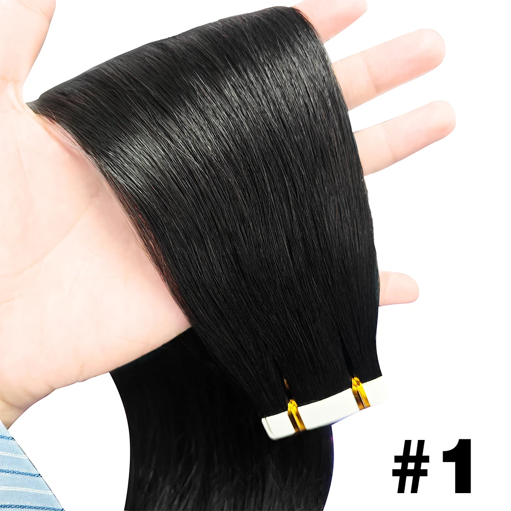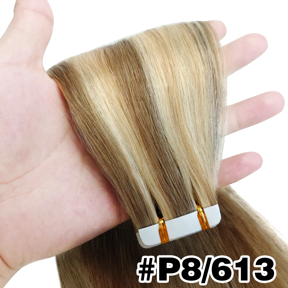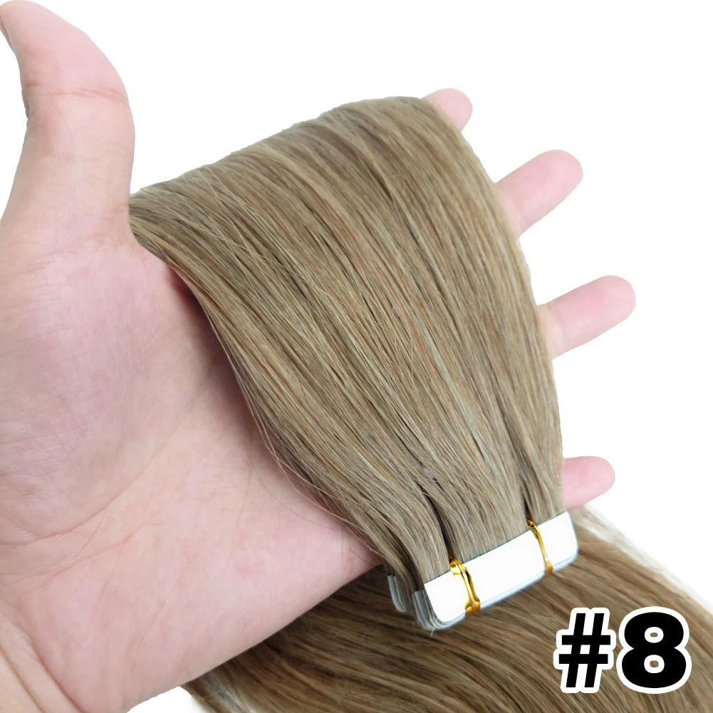 Extensions de cheveux naturels lisses en soie, bande Invisible sans couture, couleur P4/27, 20 pièces, pour femmes