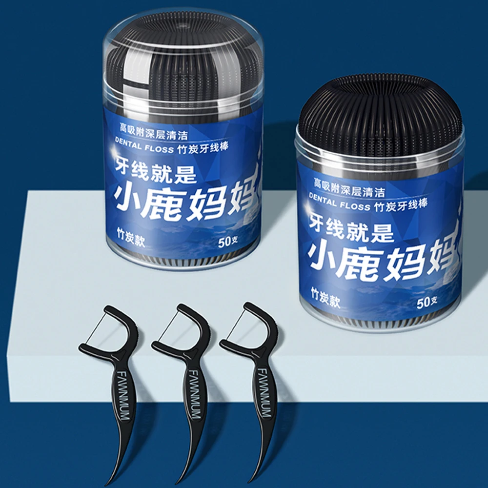 1 bote x 50 pièces x bâton de fil dentaire au charbon de bambou