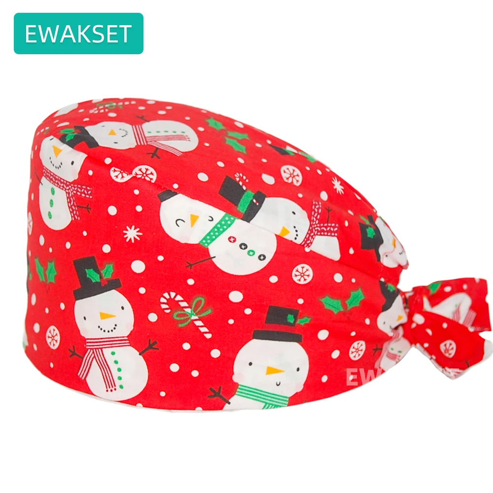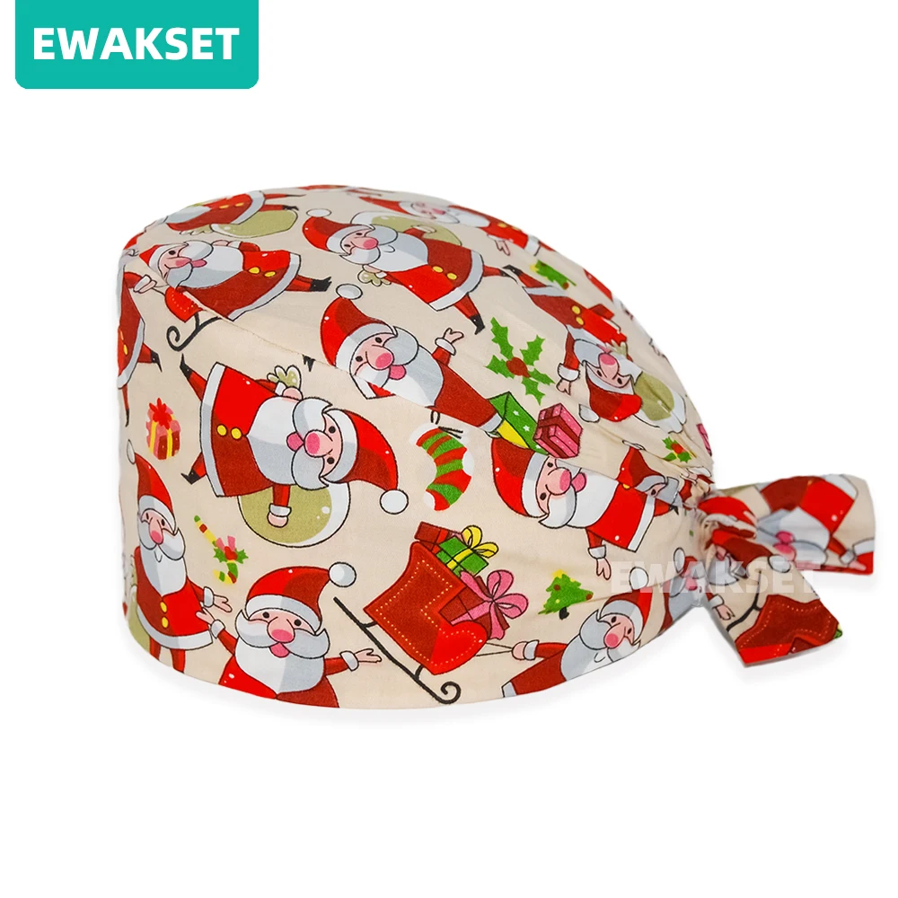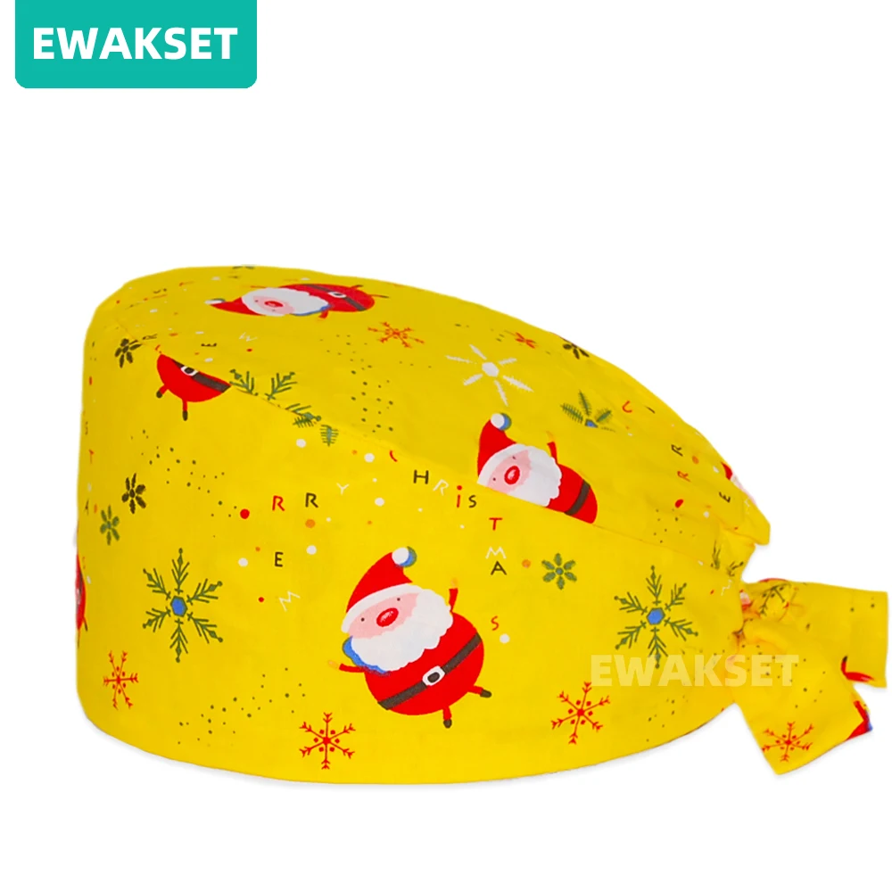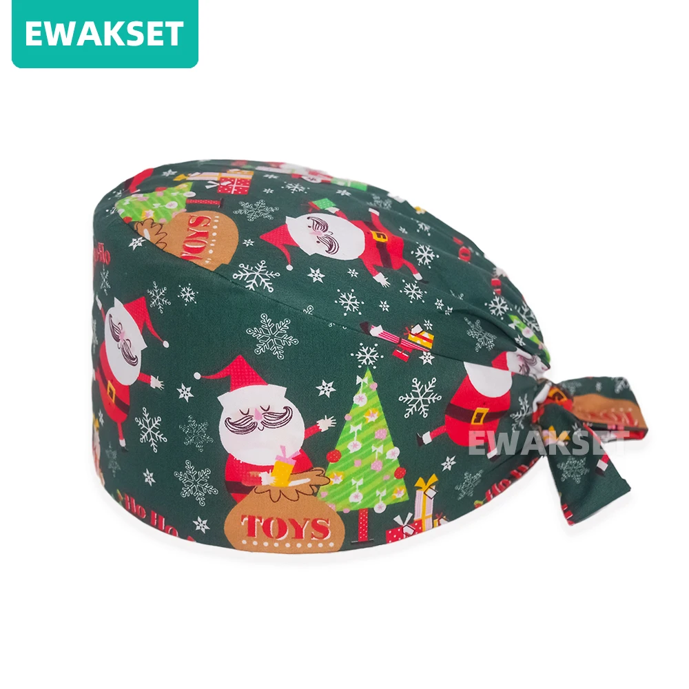 Femme homme motif de noël casquette chirurgicale 100% coton Spa laboratoire animal de compagnie hôpital dentaire chapeau médical en gros salle d'opération gommage casquette