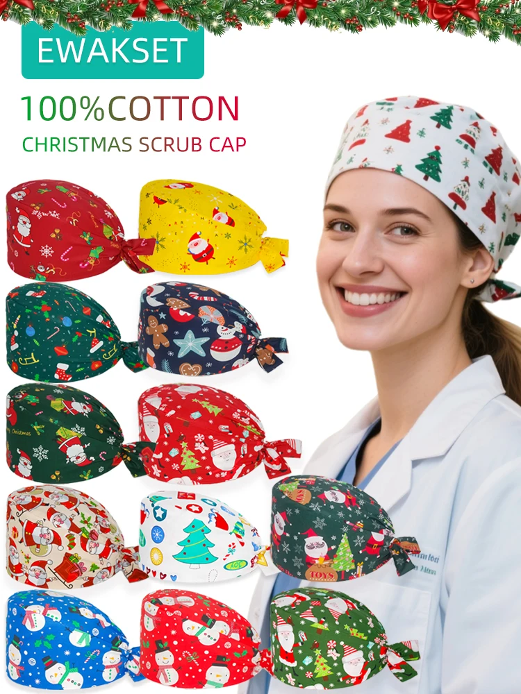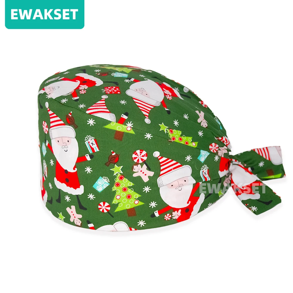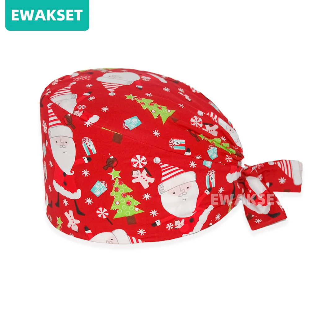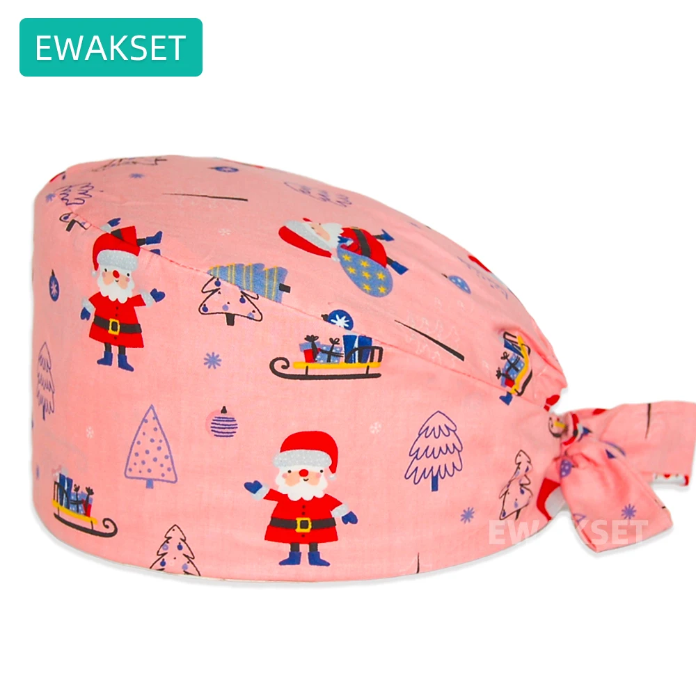 Femme homme motif de noël casquette chirurgicale 100% coton Spa laboratoire animal de compagnie hôpital dentaire chapeau médical en gros salle d'opération gommage casquette