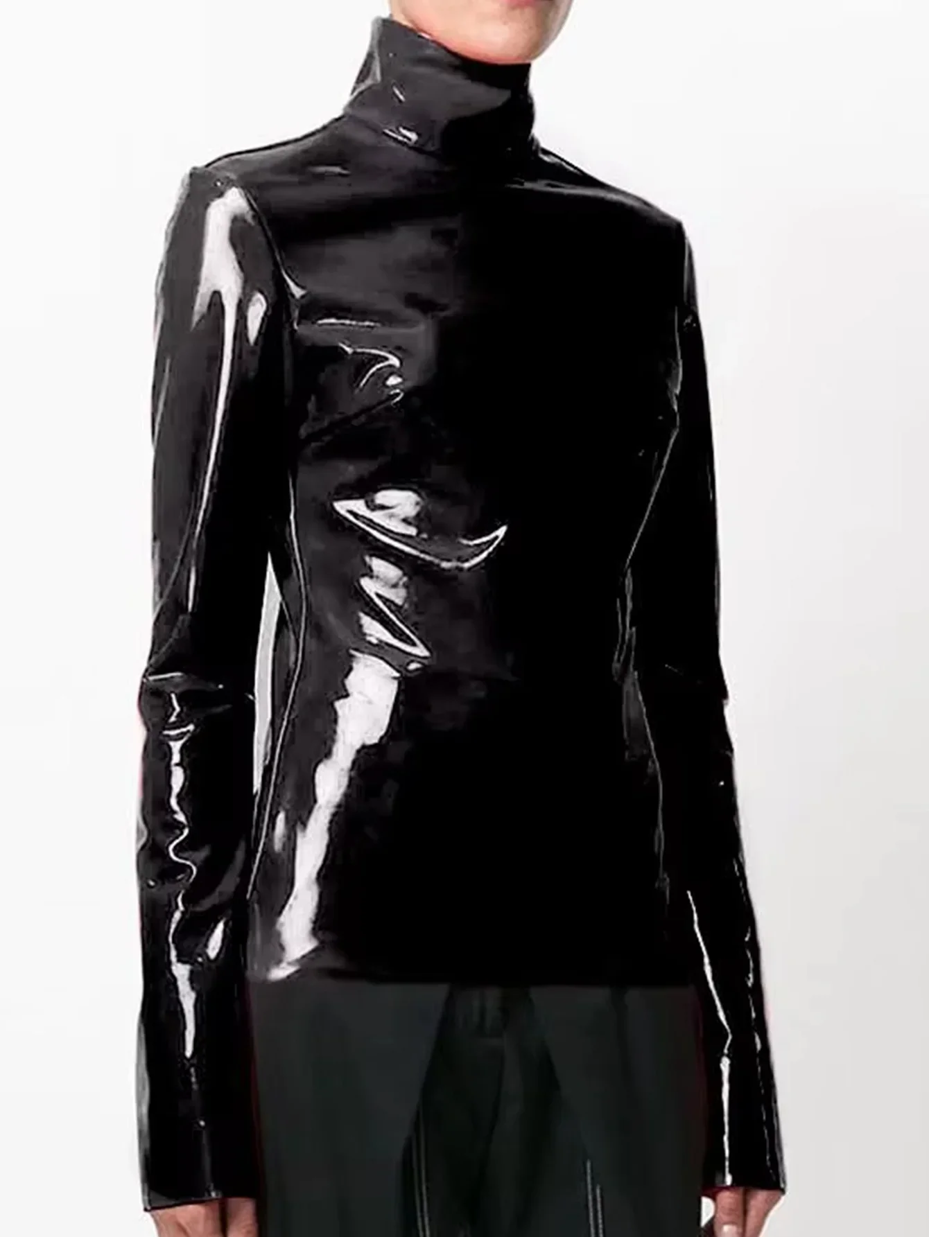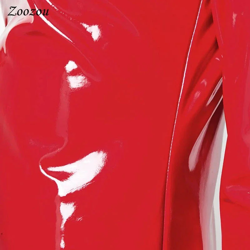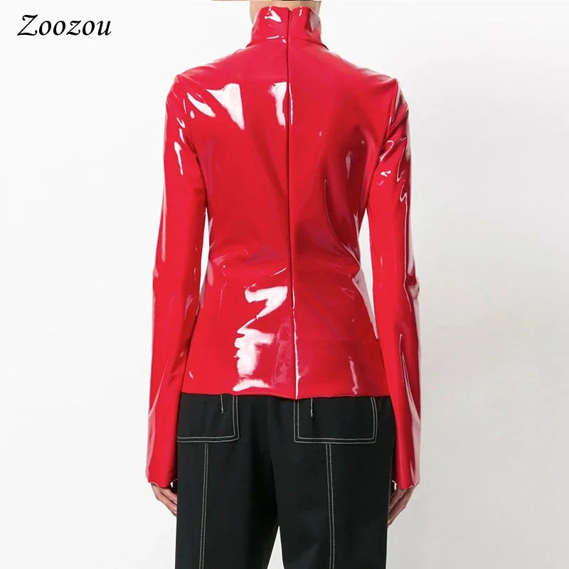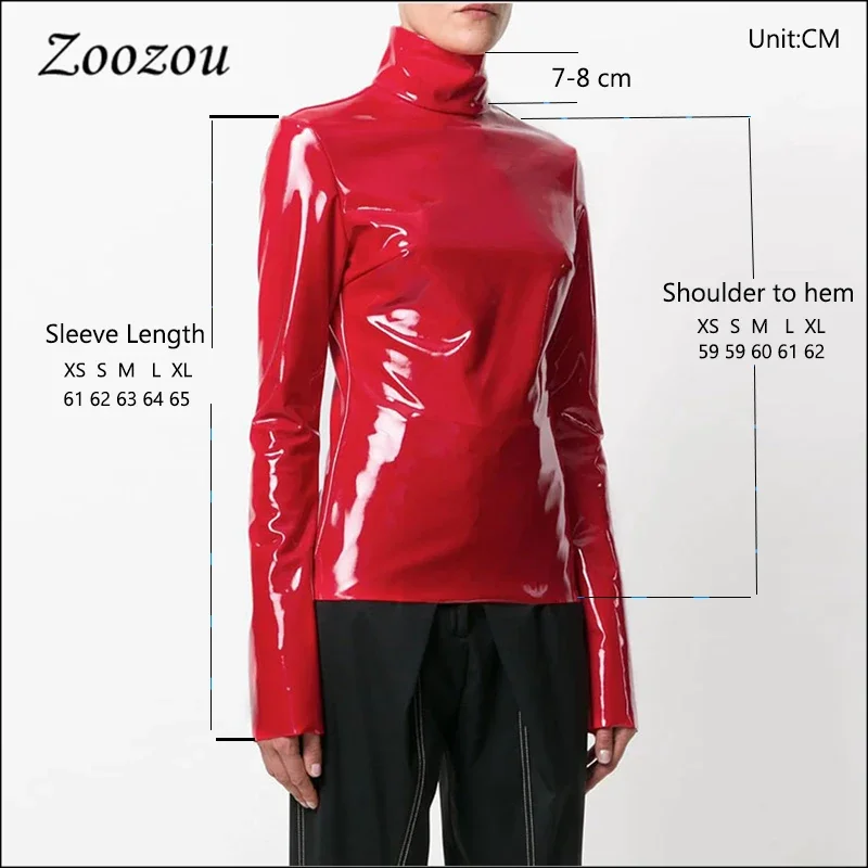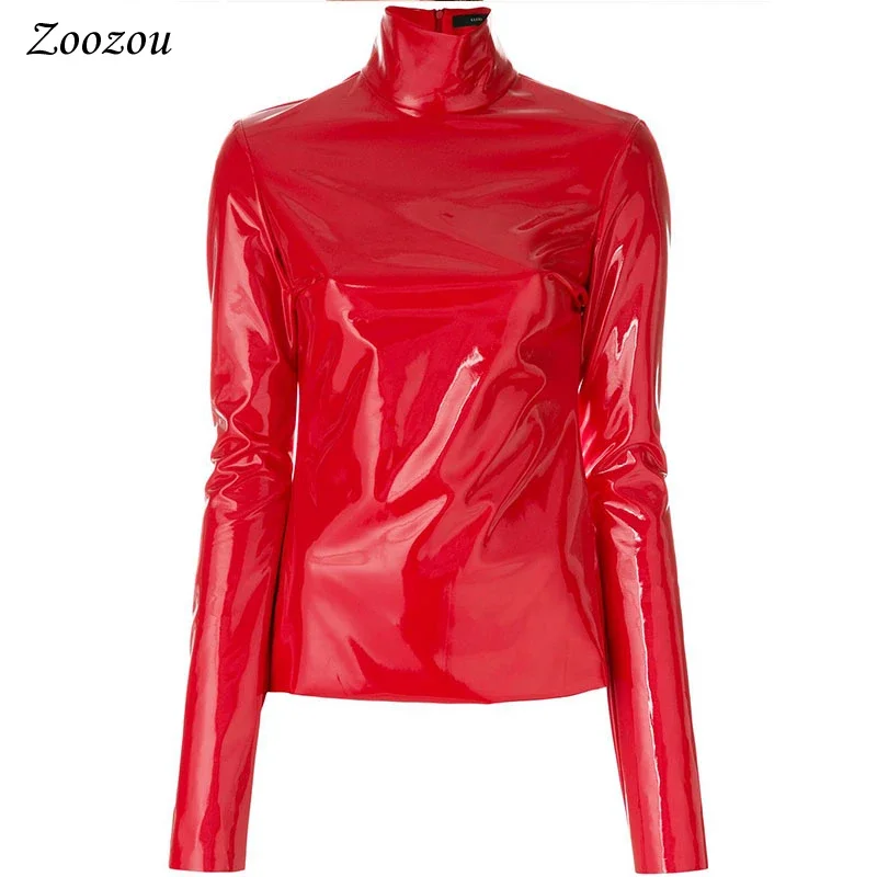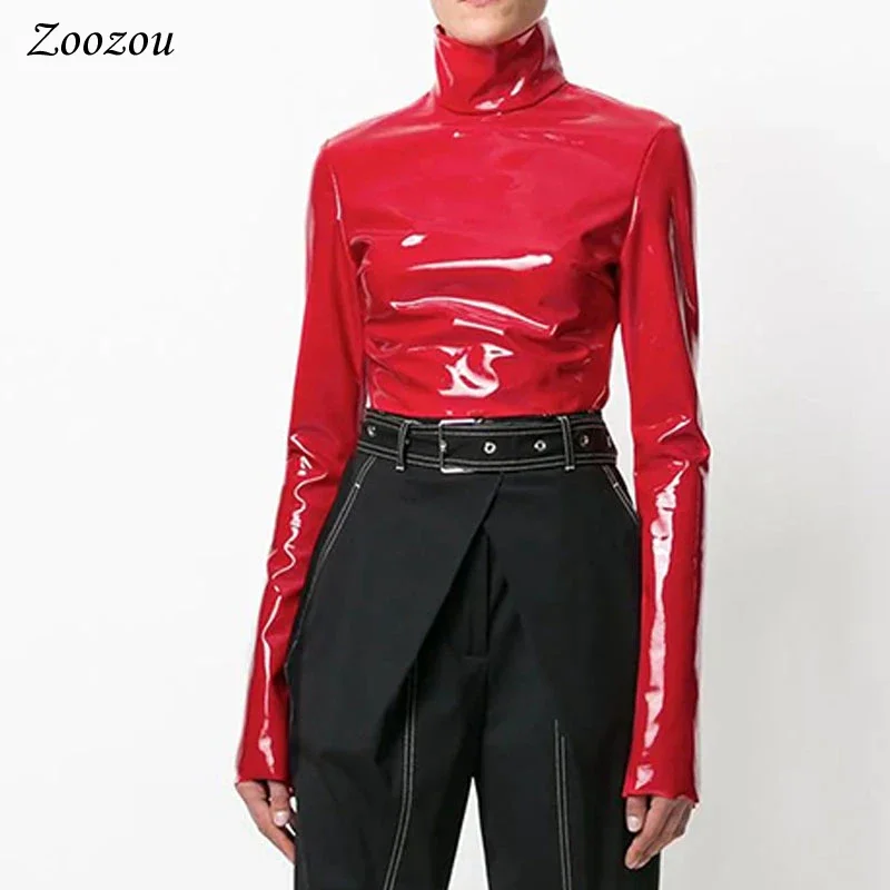 Femmes brillant Faxu cuir grande taille hauts à col roulé fermeture éclair PVC pull noir rouge cuir PU 4XL 5XL 6XL vêtements