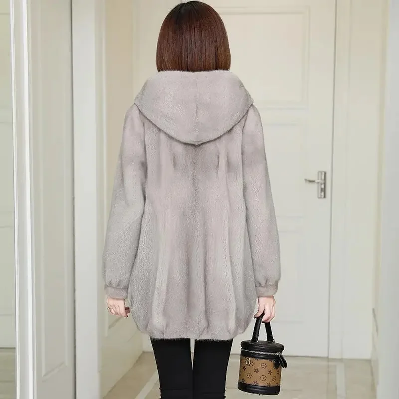 Femmes fausse fourrure manteau femmes mouton cisaillement automne hiver granulaire velours coréen manteau court fausse fourrure de renard col à capuche manteau femme