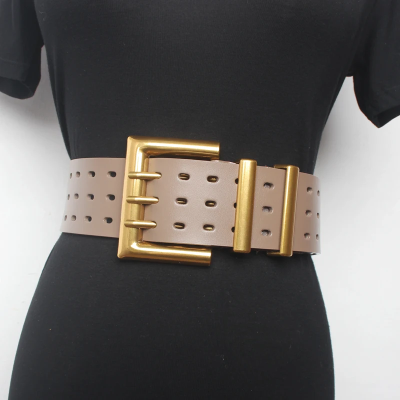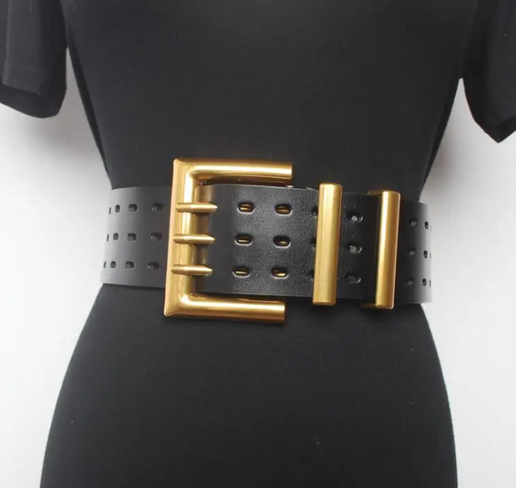 Femmes piste mode en cuir véritable boucle en or Cummerbunds femme robe Corsets ceinture ceintures décoration large ceinture R1520
