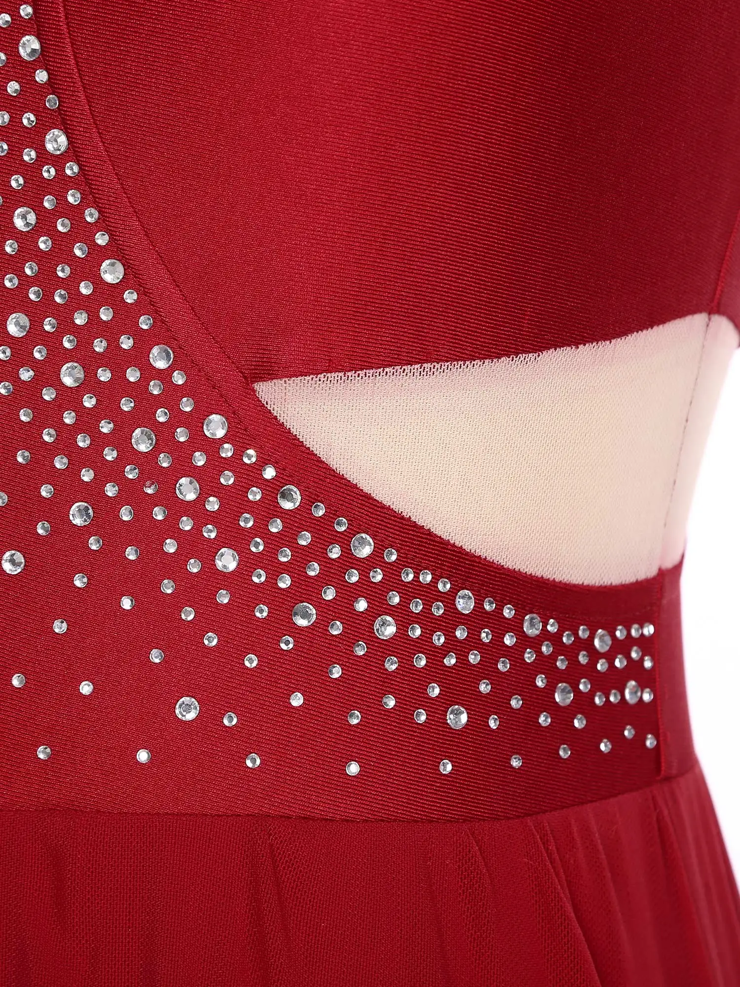 Le corsage est orné de strass brillants pour égayer toute performance.Une épaule avec un design découpé semble unique et chic.