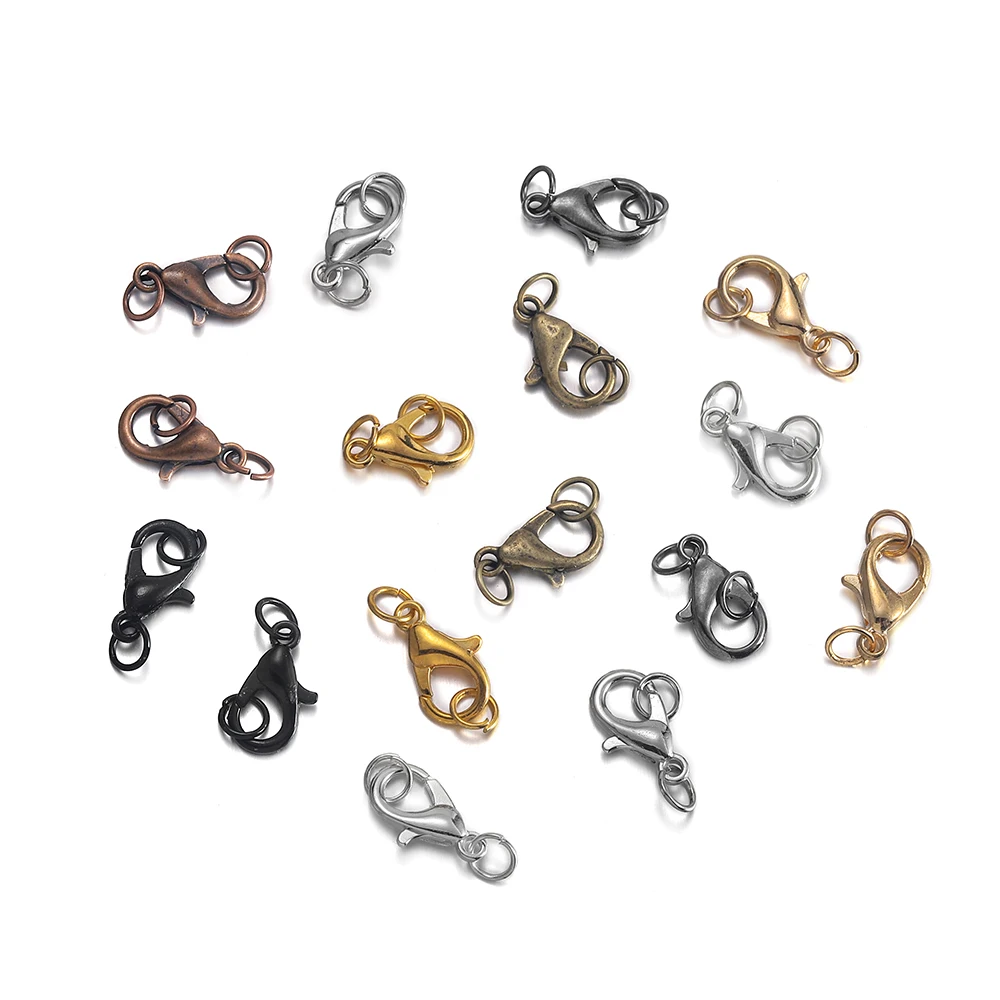 Fermoirs à homard, 50 pièces, crochets avec 100 anneaux de saut, fermoirs d'extrémité, connecteurs de Bracelet et de collier pour bricolage, fournitures de fabrication de bijoux