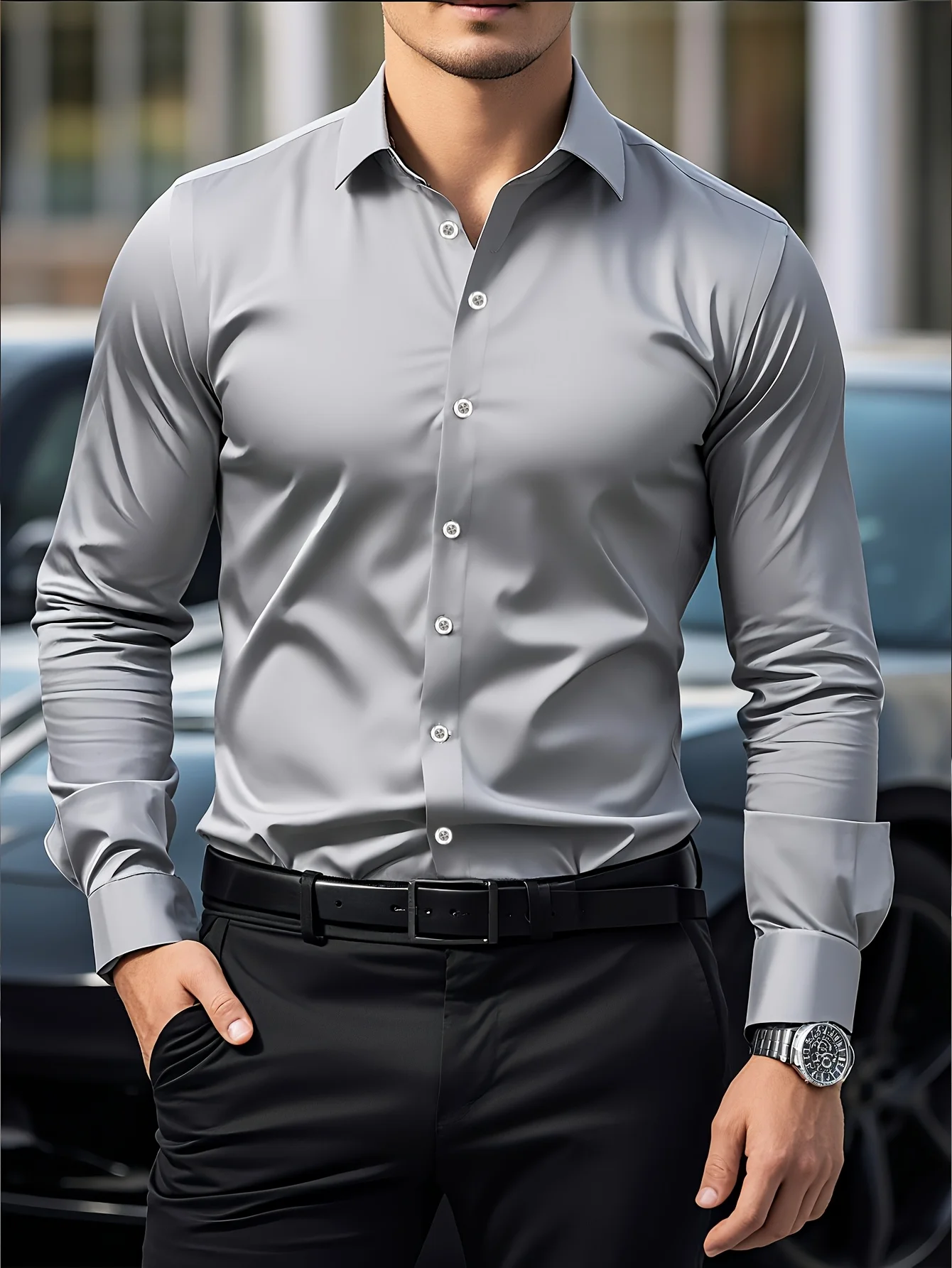 FGKKS nouveaux hommes chemise flambant neuf couleur unie à manches longues tissu élastique hommes plusieurs couleurs mâle qualité chemise de base