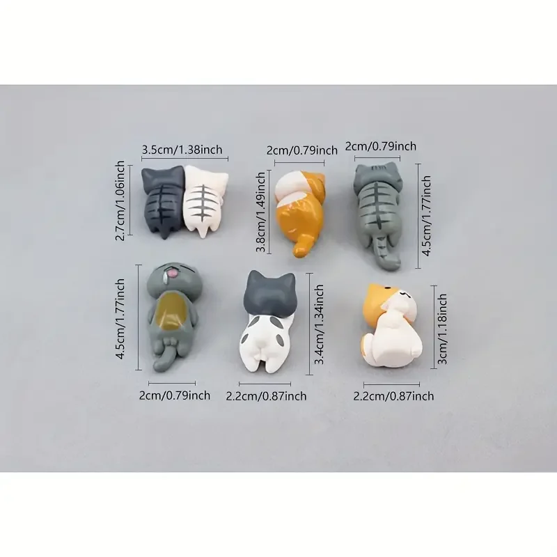 Figurines de chat de dessin animé en PVC, 6 pièces, pour tableau de bord de voiture, Pots de plantes et décor de bord d'écran
