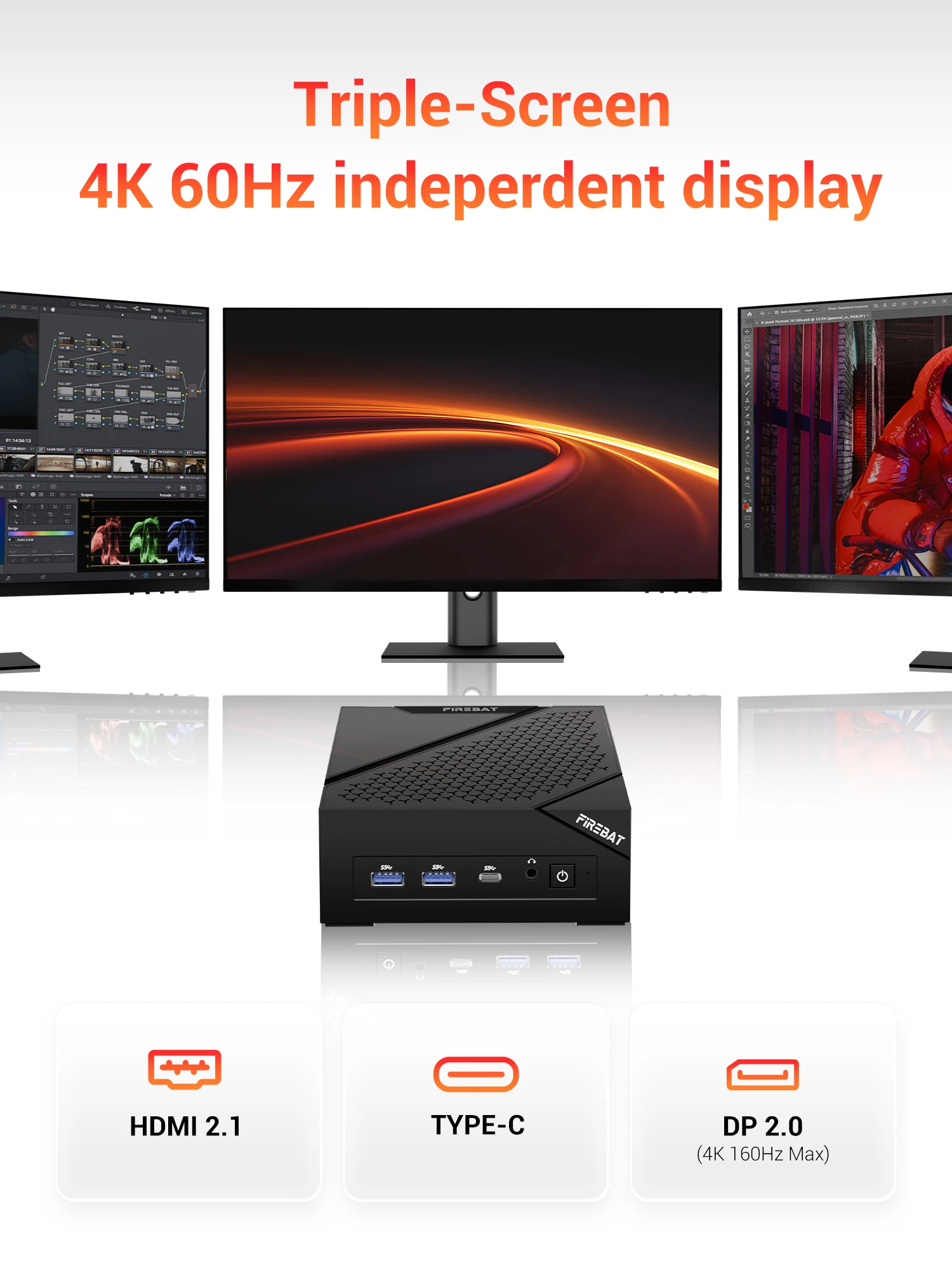 Avec des dimensions de seulement 12,8 cm x 12,6 cm x 5,1 cm et un poids de seulement 440 g, il offre une puissance de niveau bureau avec une densité étonnante, que ce soit pour créer des mondes numériques ou gérer des opérations multi-écrans.