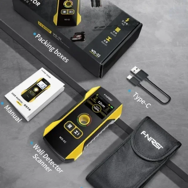 Ce scanner de détecteur mural peut vous aider à localiser rapidement les bords et le centre du métal, des goujons, des solives, des tuyaux et des fils CA sous tension derrière les murs, les sols et le plafond.Les plages de mesure du bois sont ≤38 mm, fils AC ≤40 mm, tuyaux métalliques ≤ 100 mm et barres d'armature ≤ 120 mm.