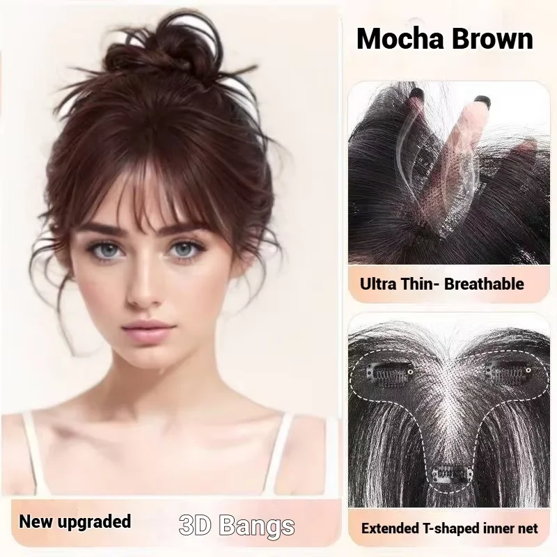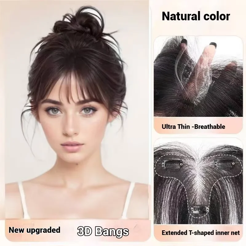 Frange de cheveux humains améliorée pour femmes, entièrement faite à la main, naissance des cheveux naturelle, couverture d'extension de cheveux, perte de cheveux