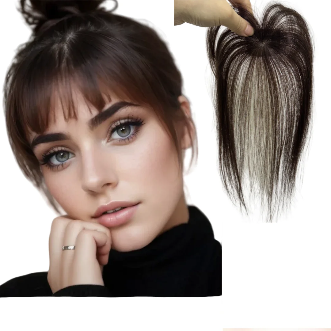 Frange de cheveux humains légers et fins, couverture à 360 degrés, cheveux gris avec frange d'air 3D, cheveux brésiliens invisibles non-remy, 1 Clip dans les Extensions de cheveux