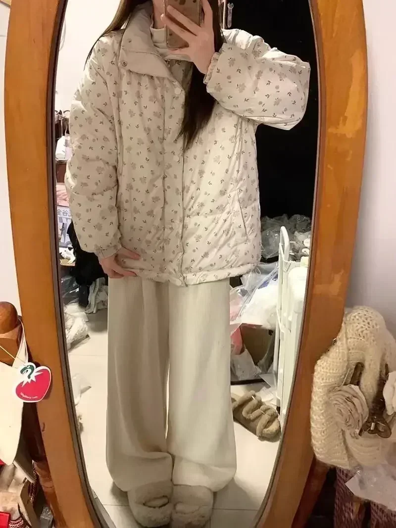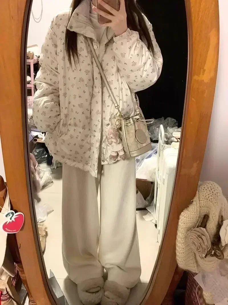 Gagaok manteau d'hiver mode coréenne Parkas doux imprimé fleuri col montant vestes chaudes femme doux Ropa De Invierno Mujer