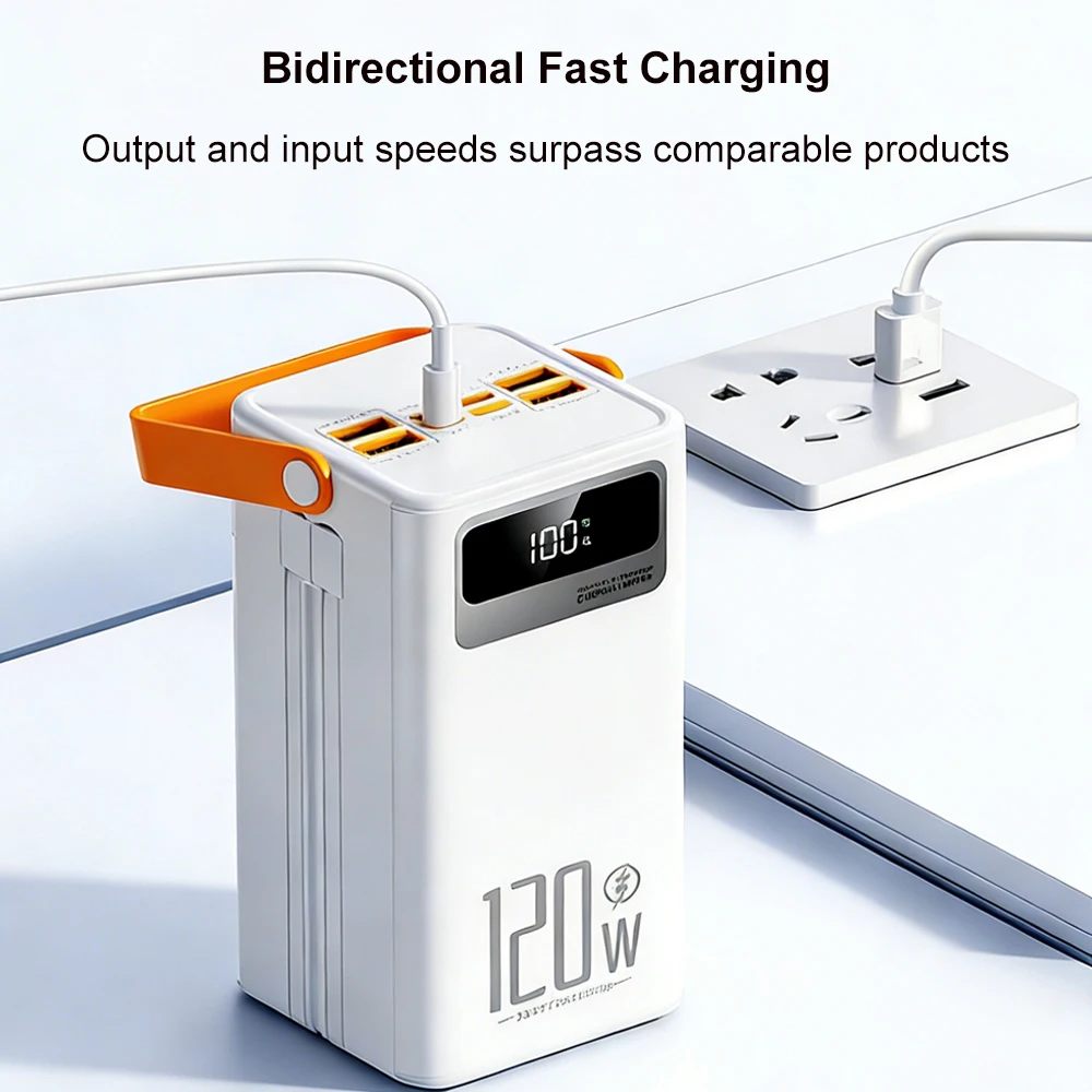 Batterie Externe Portable 80000mAh 50000mAh, Station d'Alimentation à Charge Rapide 120W, Batterie de Secours, Double USB Type-C, Lampe LED pour Camping et Téléphone.