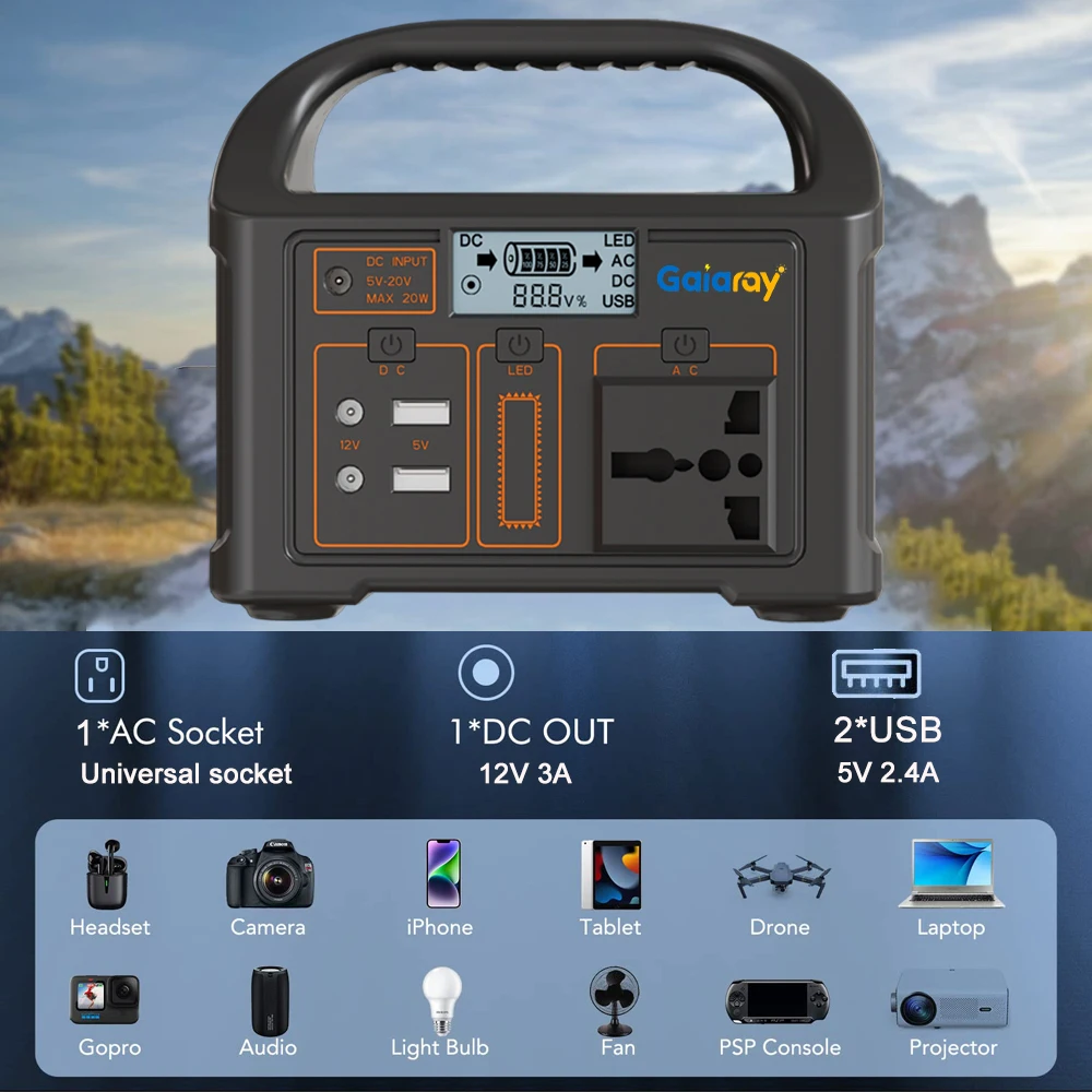 Gaiaray – centrale électrique Portable 100W 24000mAh LiFePO4, charge, générateur solaire, AC 220V, batterie externe pour le Camping