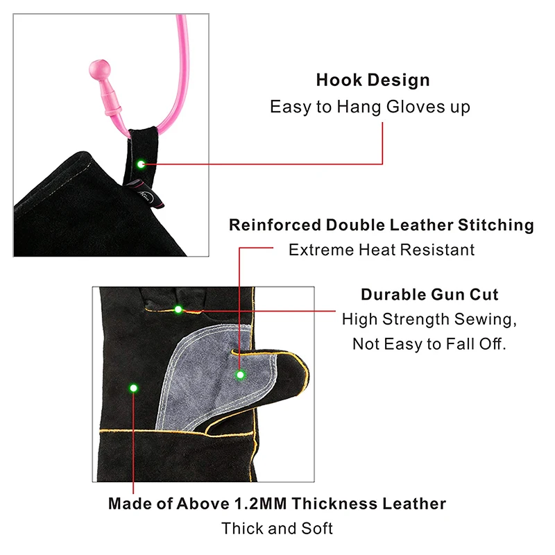 Ce gant présente une excellente qualité le rendent utile pour le soudage, le gril, le barbecue, le poêle à bois, le four, la cheminée, la découpe, le jardinage, le camping, le feu de camp, la manipulation d'animaux et bien plus encore.