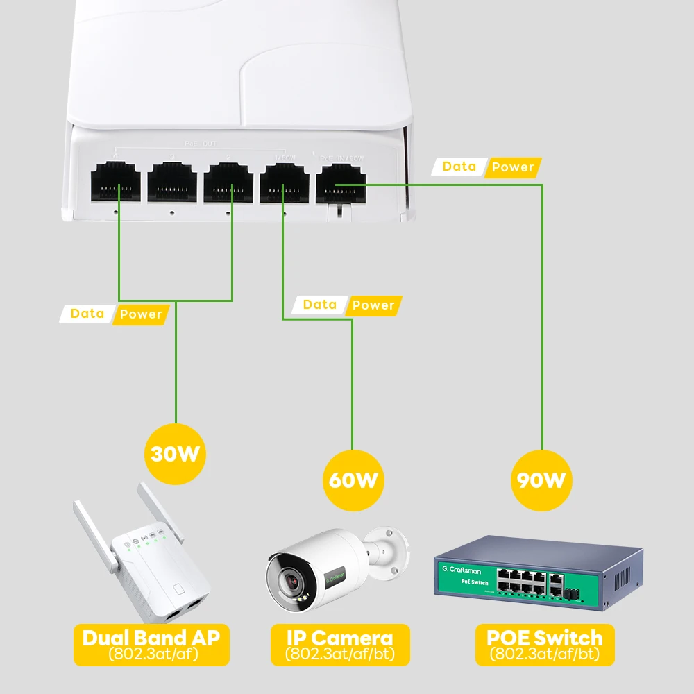 * Utilisé avec AP, caméra IP, téléphone IP et autres équipements réseau en cas de manque de ligne électrique ou loin des prises de courant
