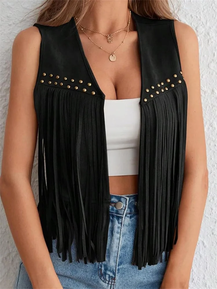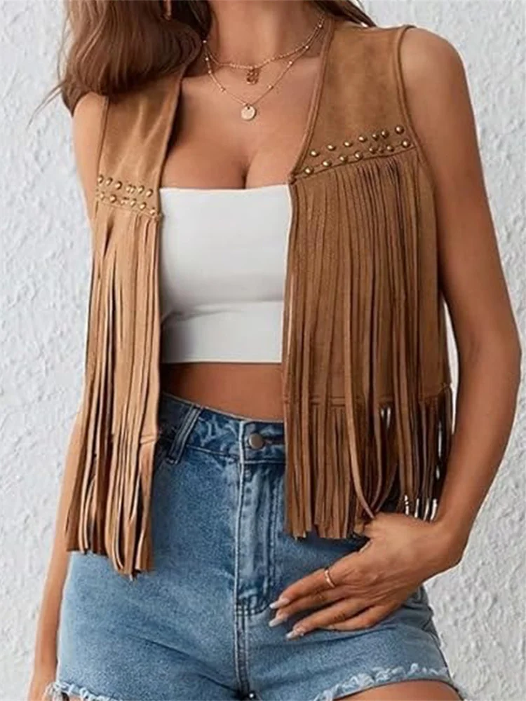 Gilet à pampilles en daim pour femmes, tenue Hippie des années 70, gilet ouvert sur le devant, veste occidentale