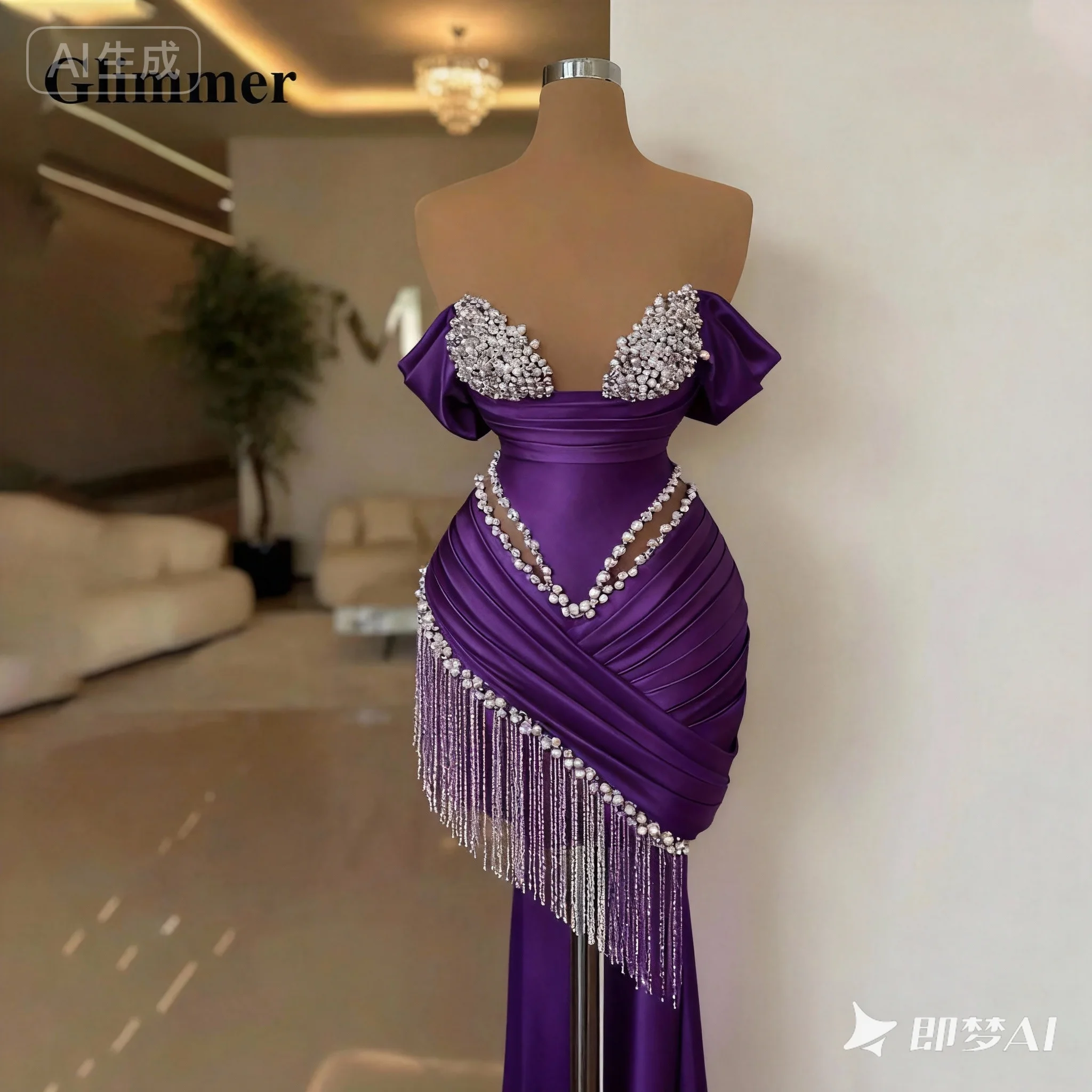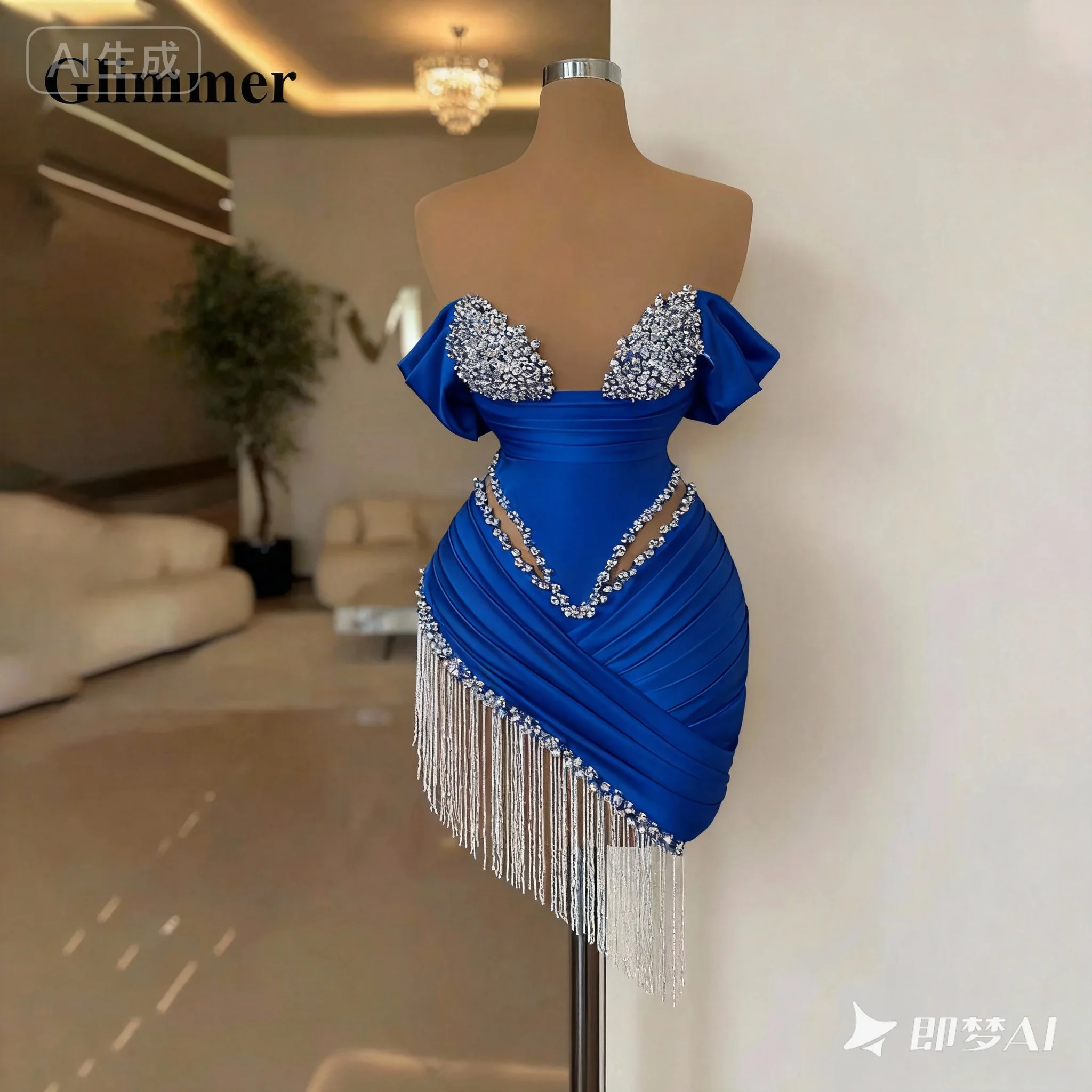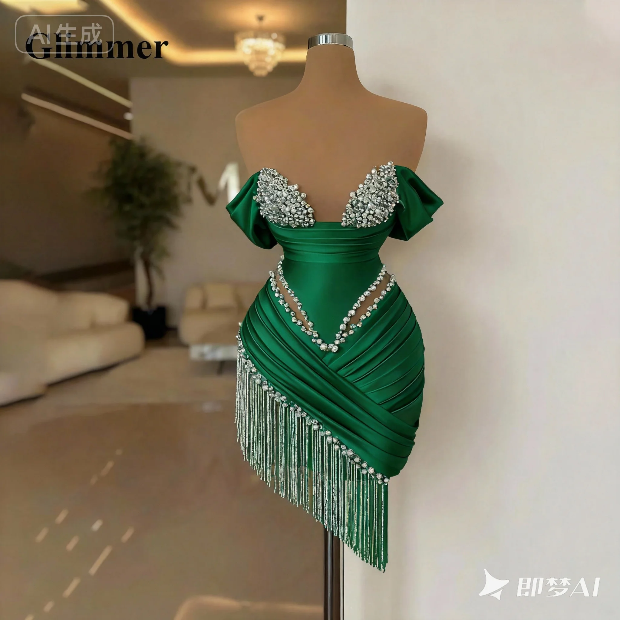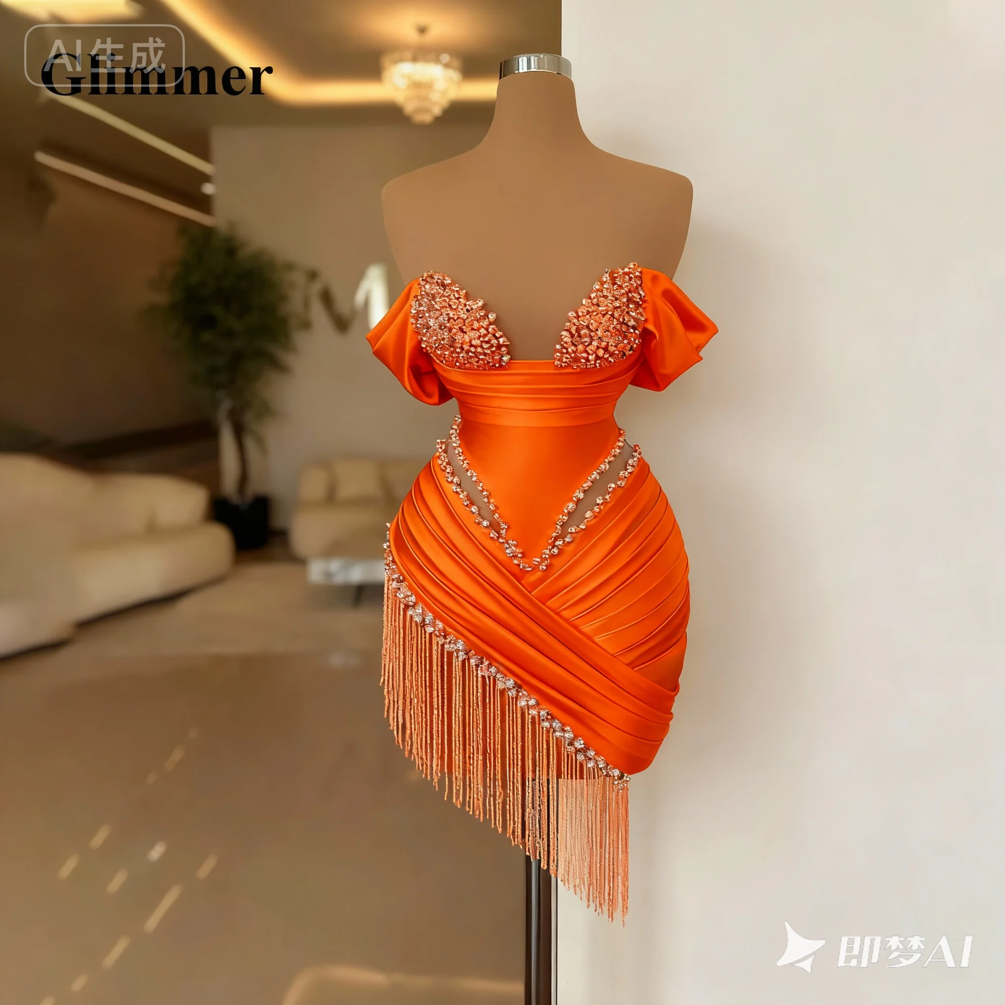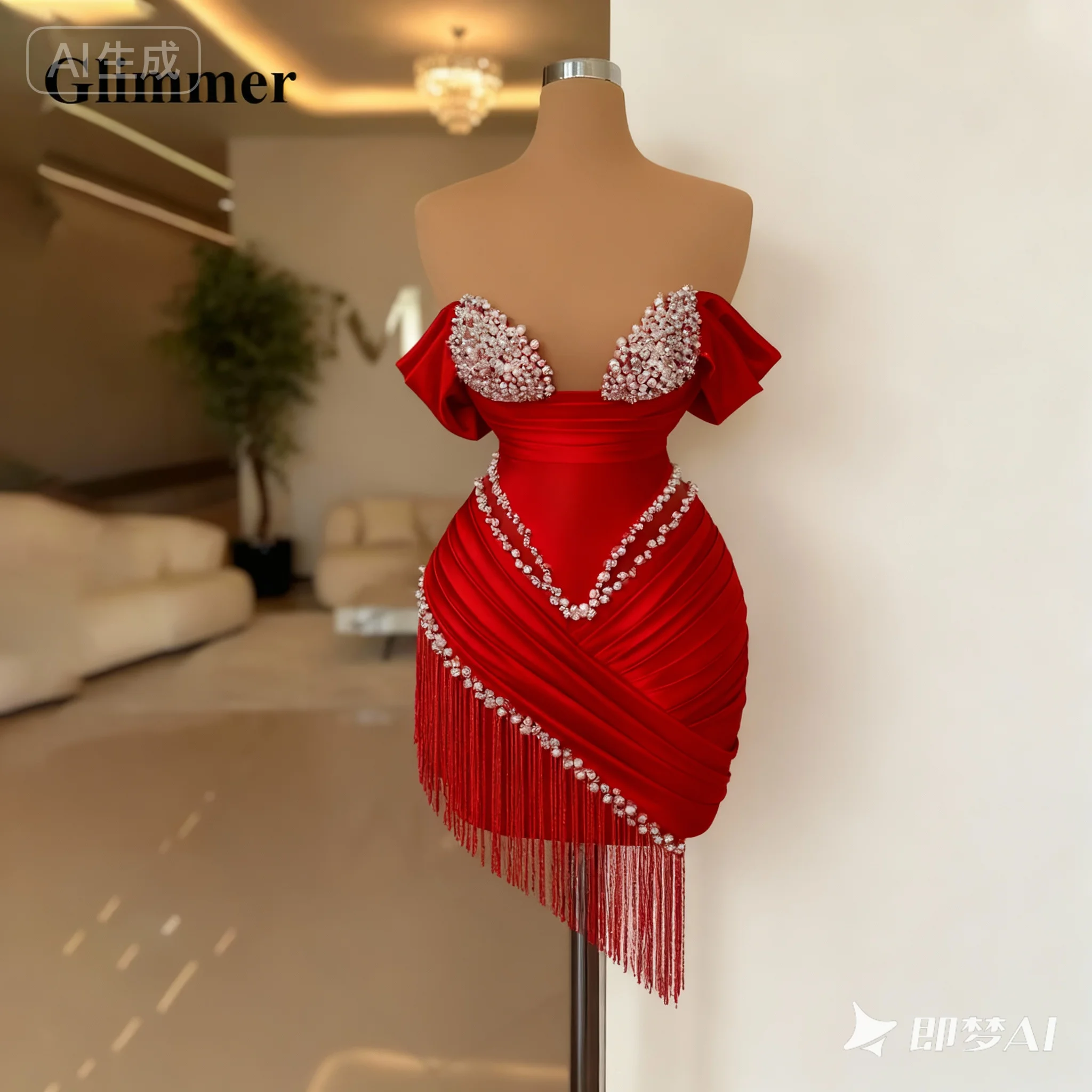 Glimmer Chic perles robes De Cocktail gland hors De l'épaule glands robes De bal chérie plissé robes De Gala personnalisé