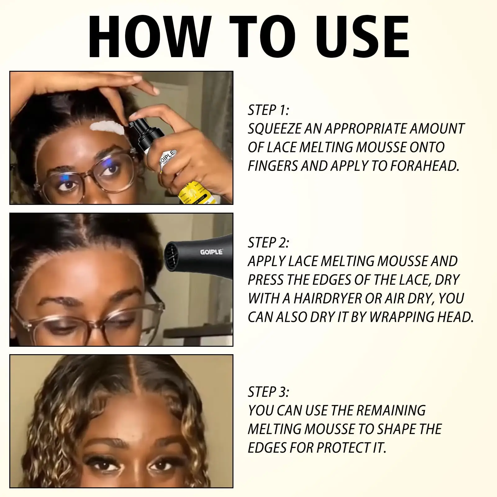GOIPLE – Mousse de fusion de dentelle pour perruque, liaison Invisible, maintien suprême, protection des bords, séchage rapide, Spray de fusion longue durée, sans résidus