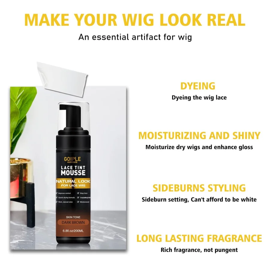 Ton de peau assorti : GOIPLE Lace Tint Mousse permet aux bords de la perruque en dentelle de mieux se fondre avec votre cuir chevelu.