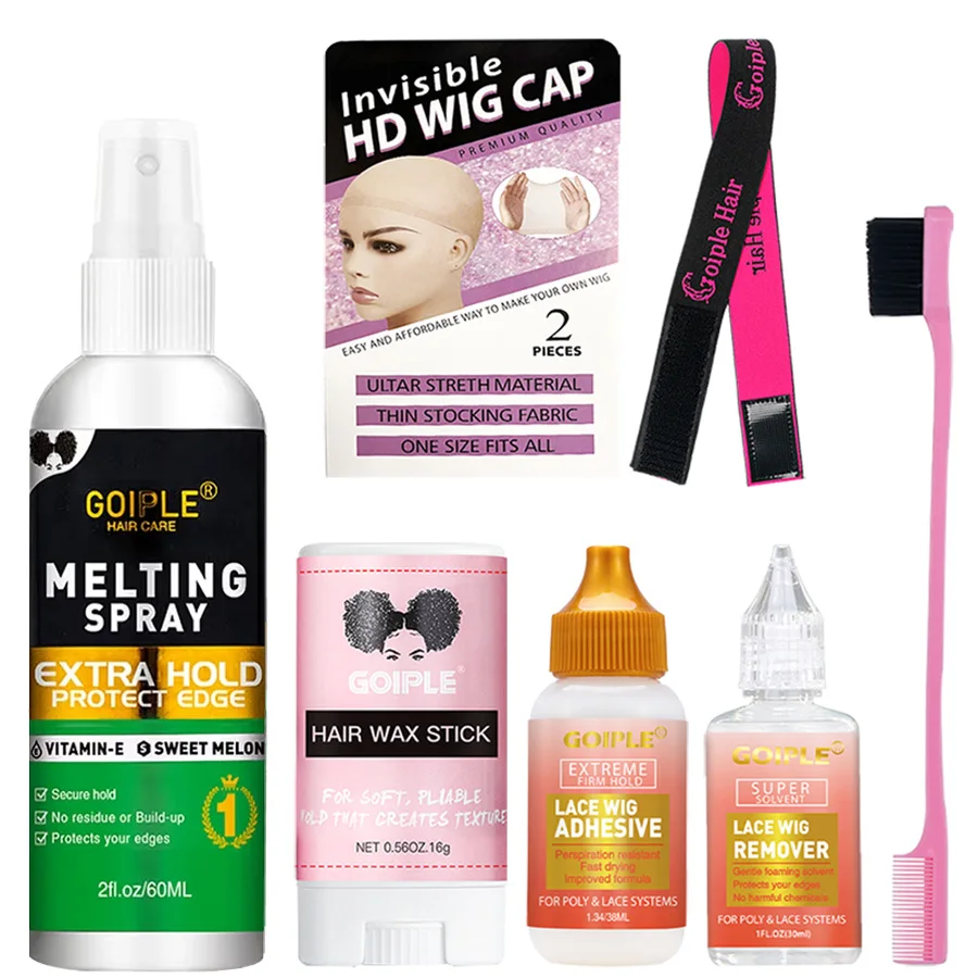 GOIPLE perruque de dentelle Spray fondant toupet adhésifs perruque fermeture frontale cheveux synthétiques front fermeture colle avec accessoires de style