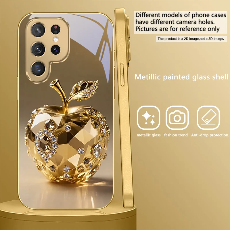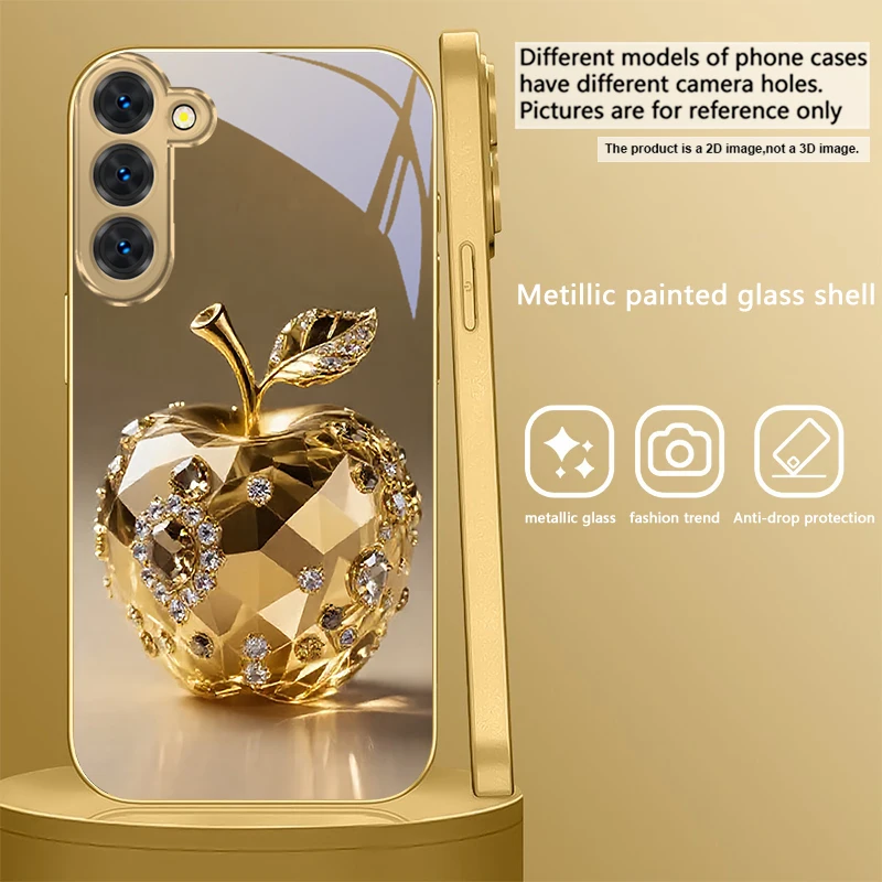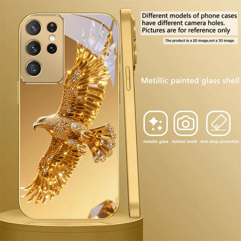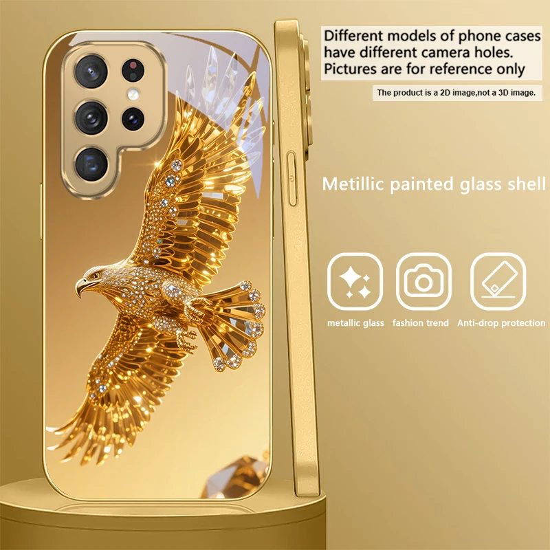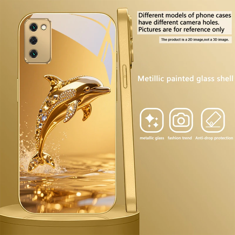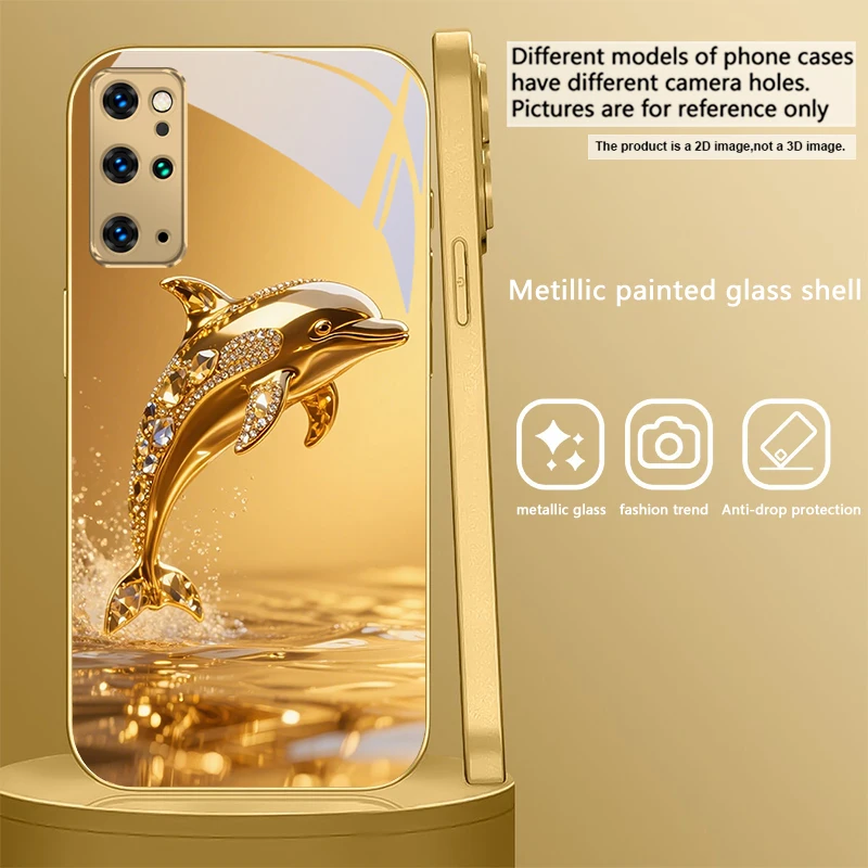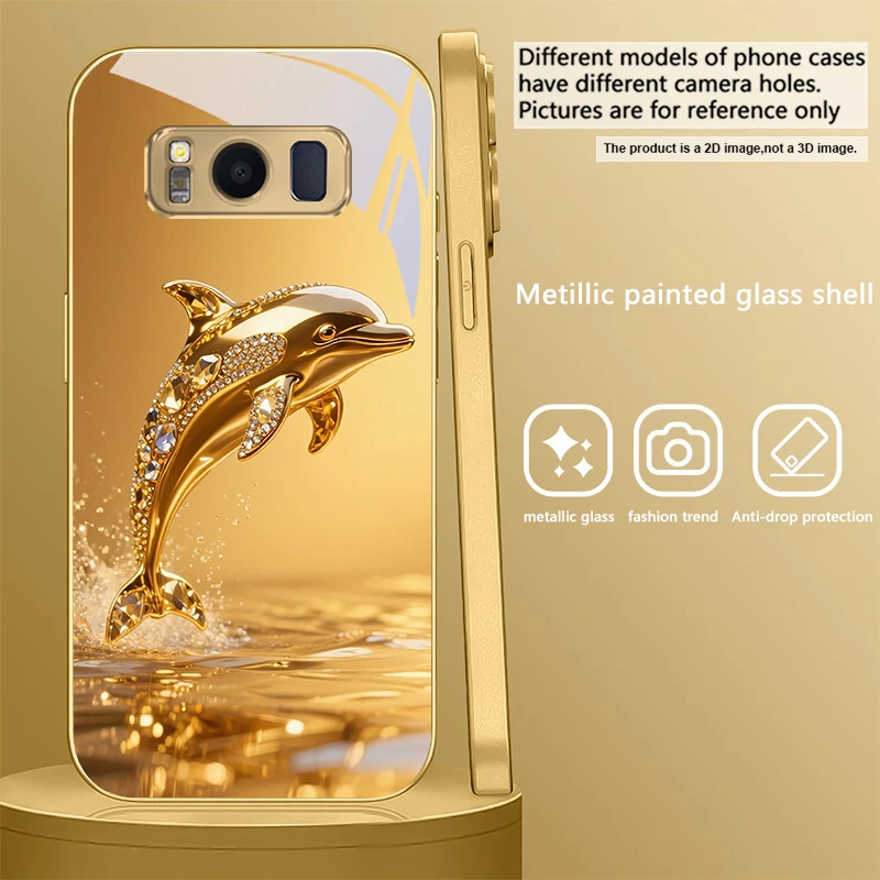Golden dolphin For Samsung Galaxy S20 FE S21Plus S22 23 Plus S24 Ultra 25Ultra S21+ S9+ 22Plus S22+ Golden glass phone case