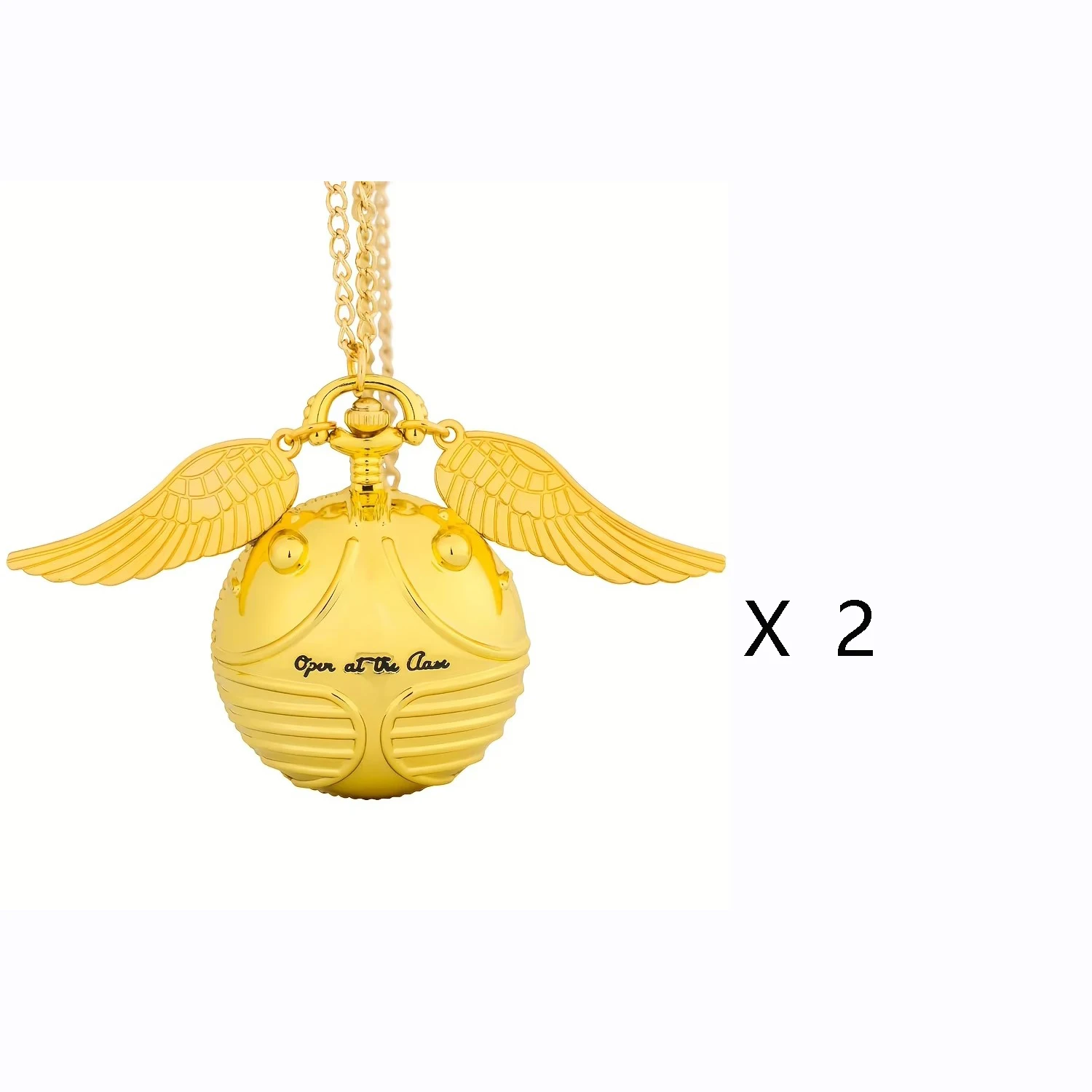 Grande petite montre de poche à quartz sphérique de vif d'or pull de mode collier aile d'ange pendentif montre de poche pour hommes et femmes