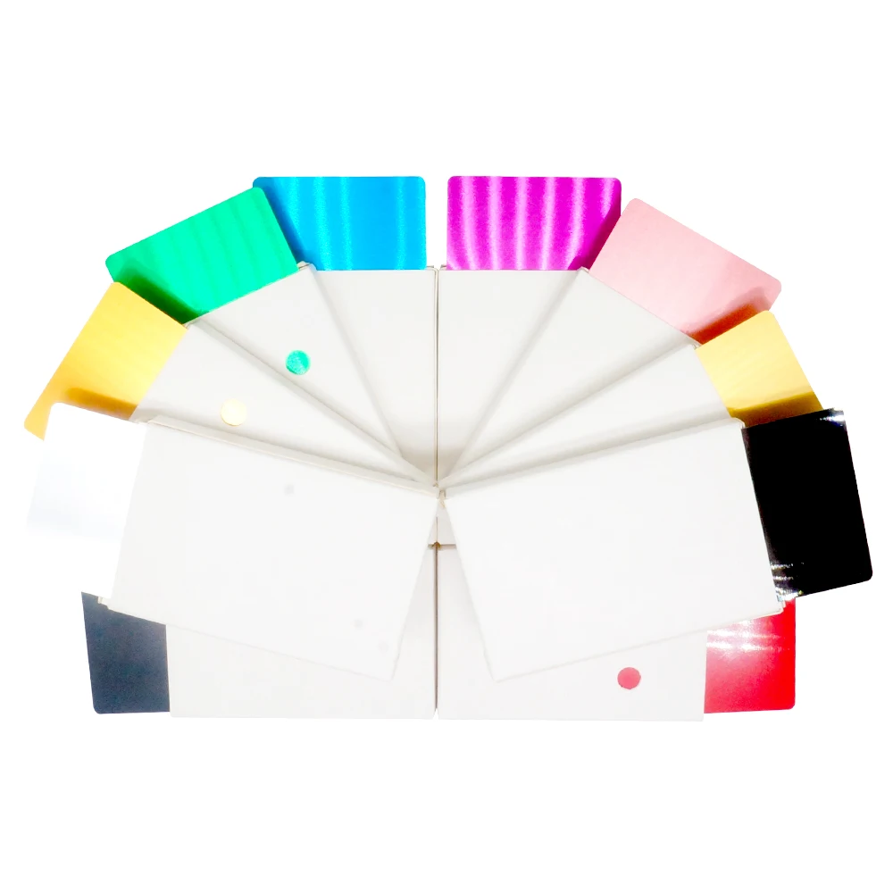 10 pièces de couleur unique par paquet, 86 x 54 mm, taille similaire à celle de la carte bancaire de crédit.