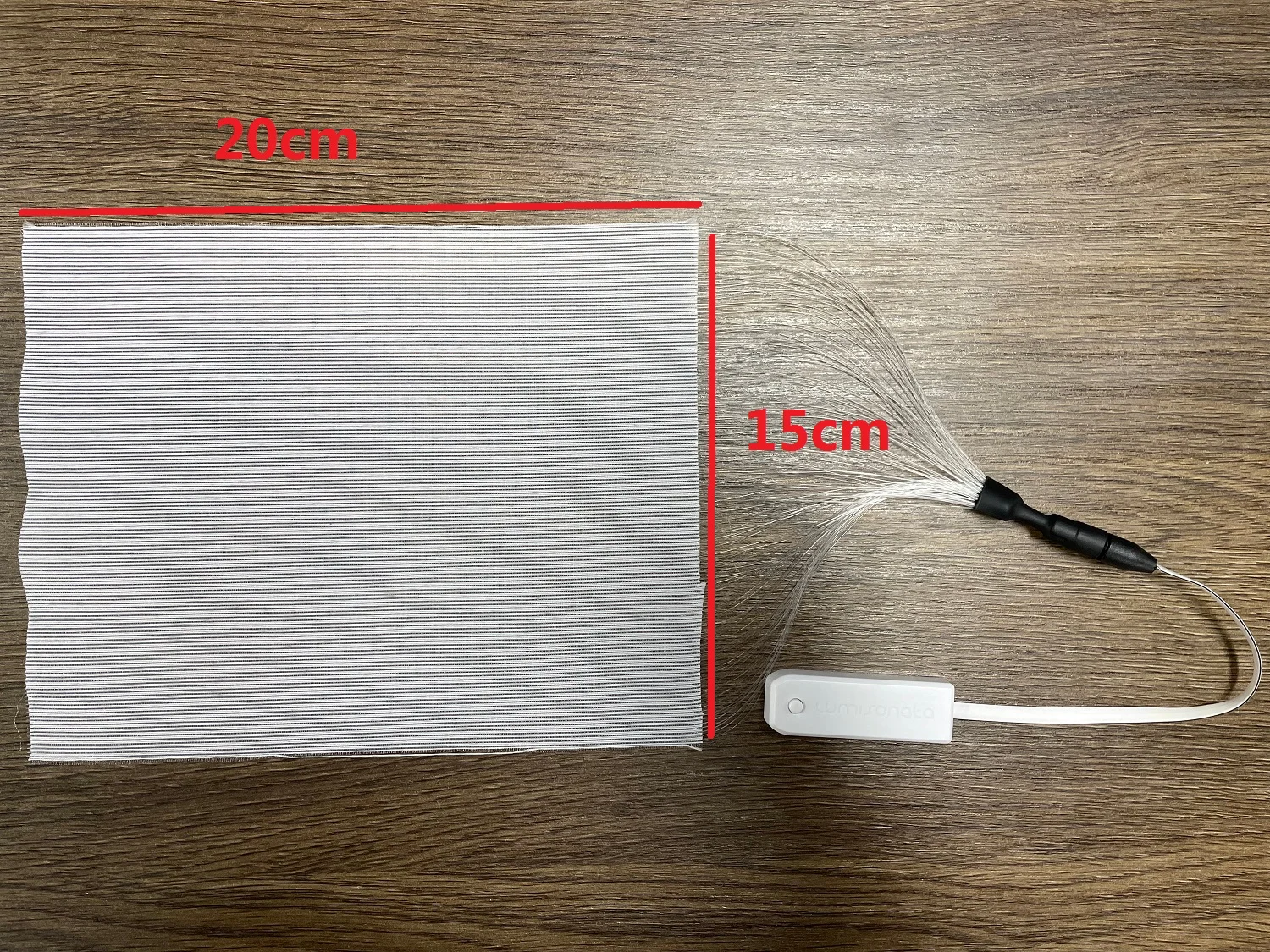 Le morceau de tissu doit être coupé et les fibres à l'extrémité B doivent être combinées avec la source de lumière led, afin de traiter le produit semi-fini, qui peut être utilisé pour fabriquer le produit fini conçu.