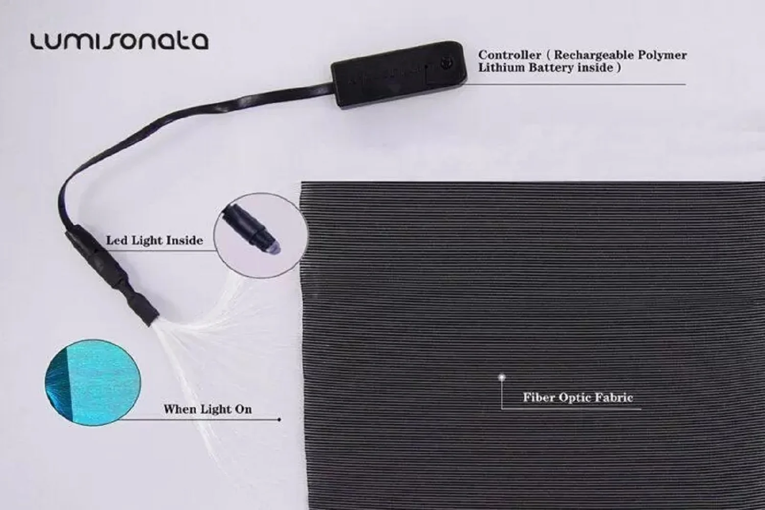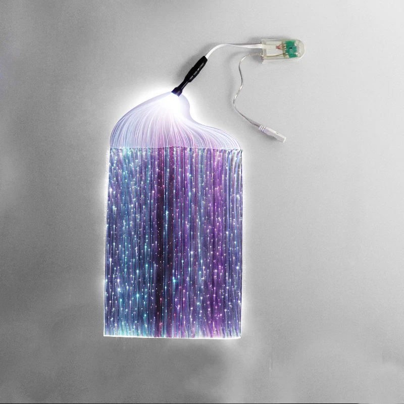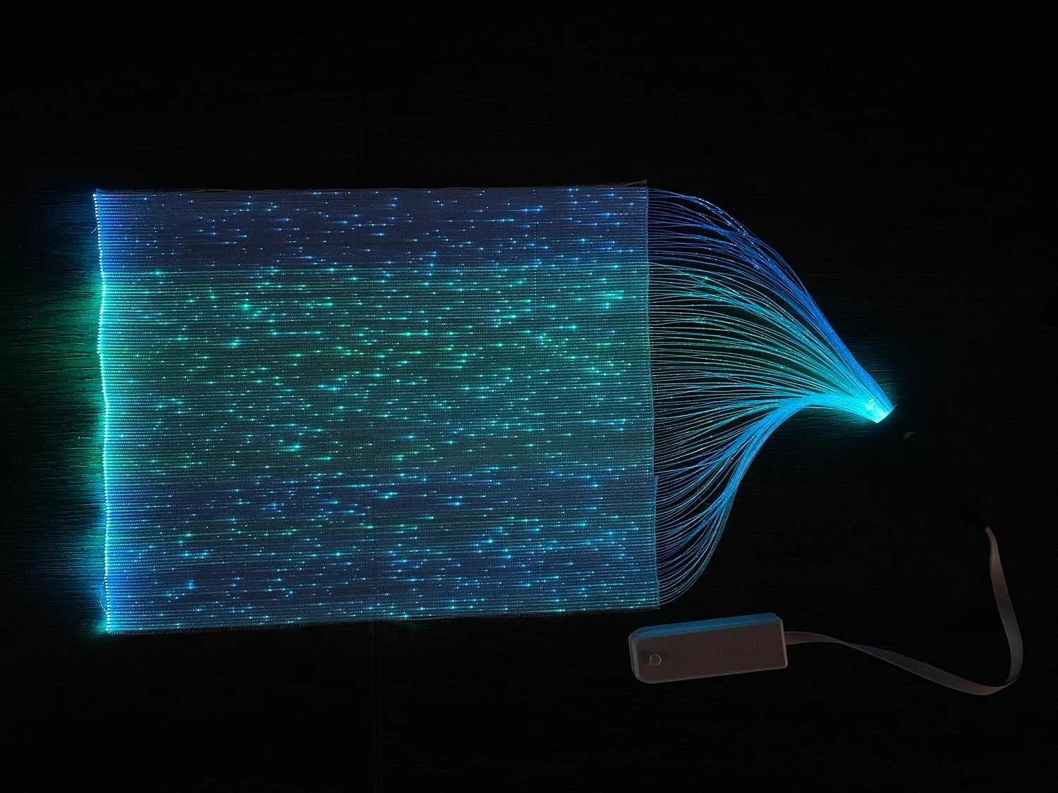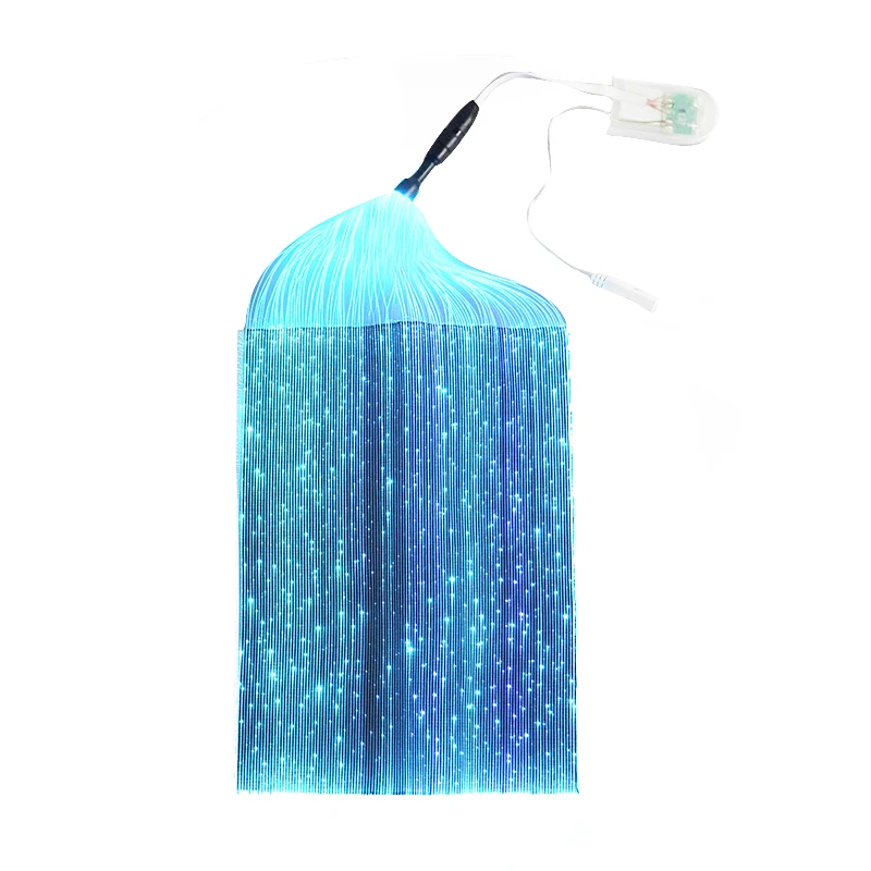 La lumière LED transmet la couleur à la fibre optique, ce qui fait que le tissu brille et change de couleur.