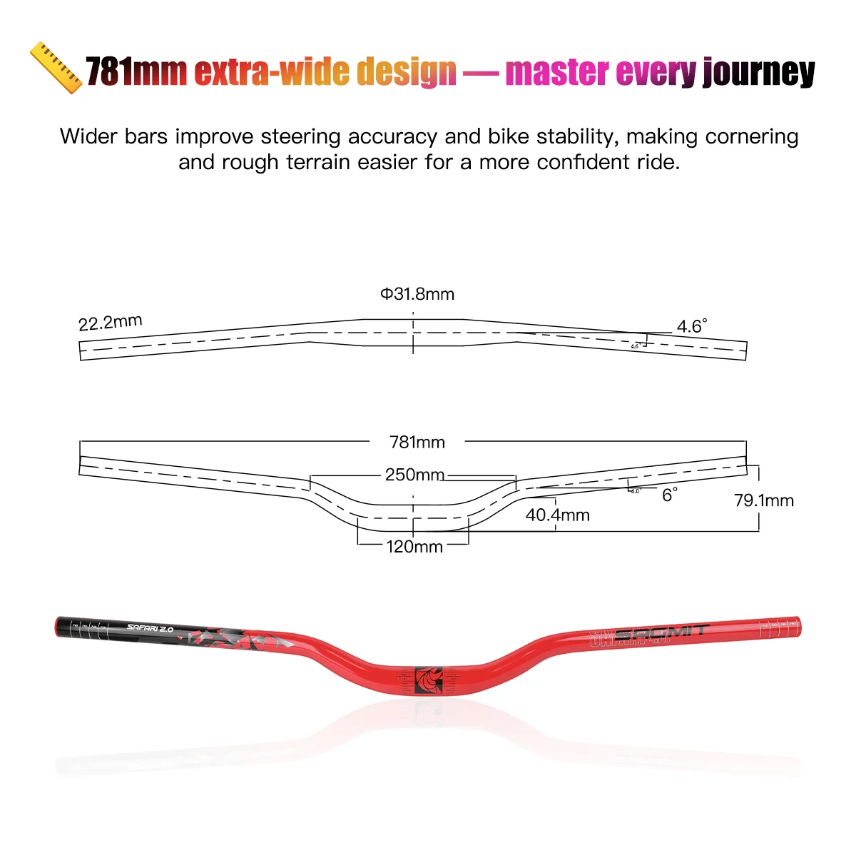 Guidon de vélo de montagne SAGMIT guidon de vélo étendu de 780 mm pour une expérience de conduite améliorée