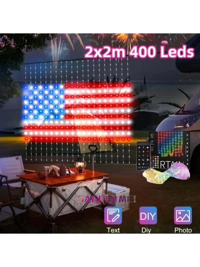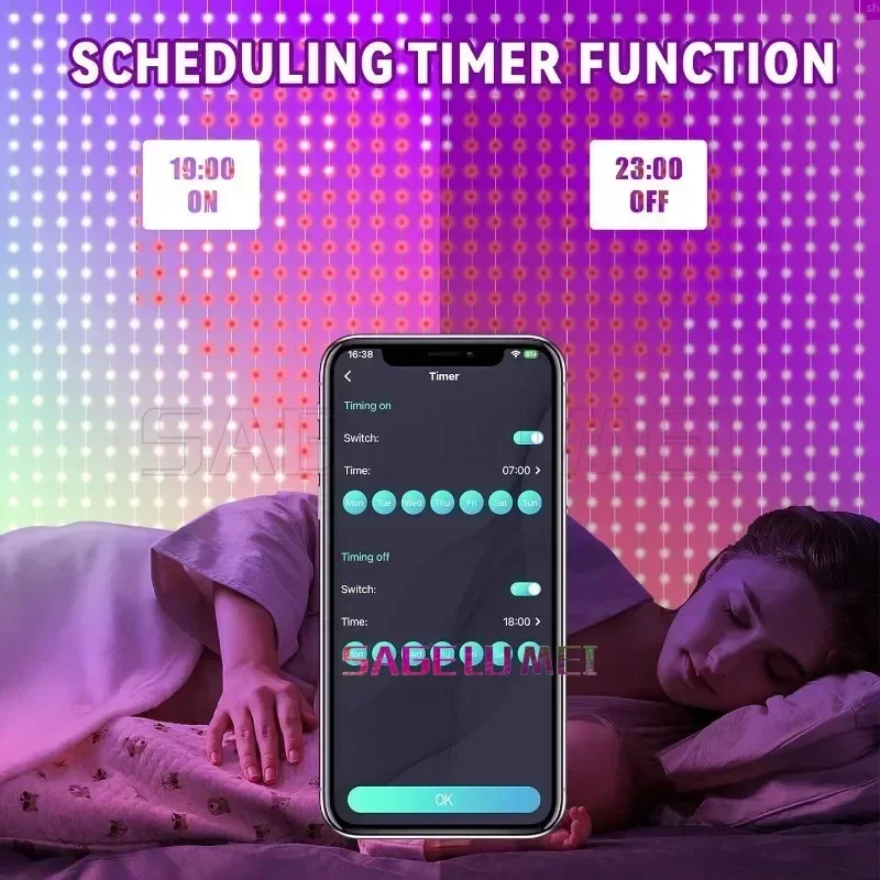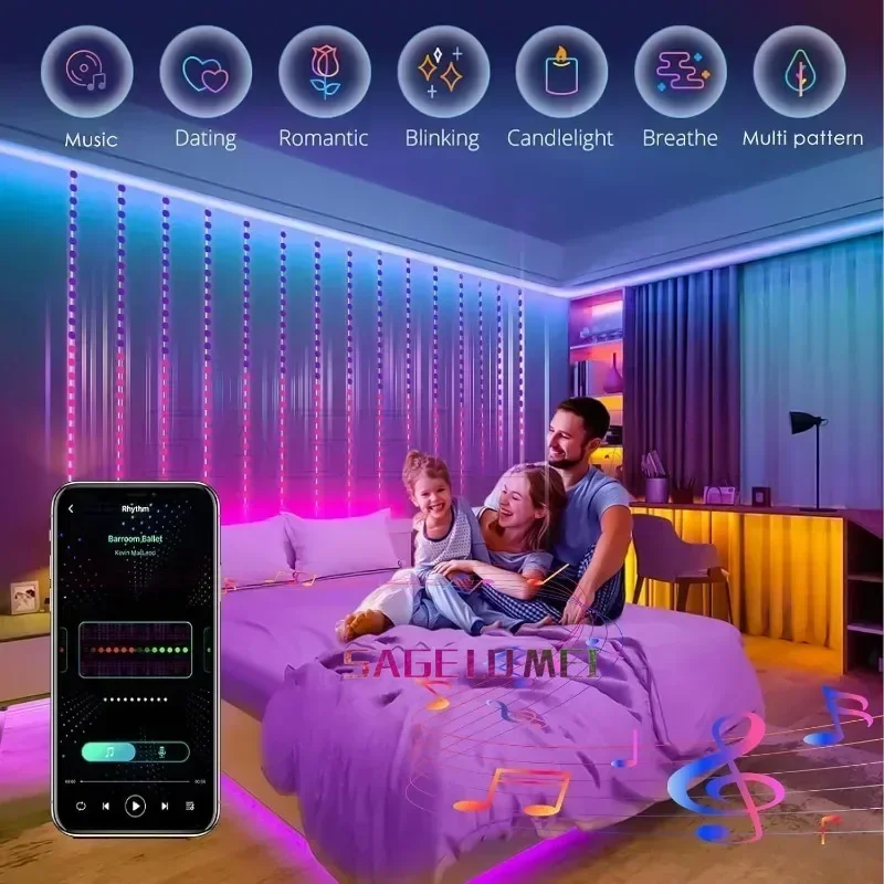 Smart Rideau Lumières 400 LED USB Rideau Guirlande Lumineuse DIY App Télécommande Musique Sync Noël Vacances Fête Rideau Cordes
