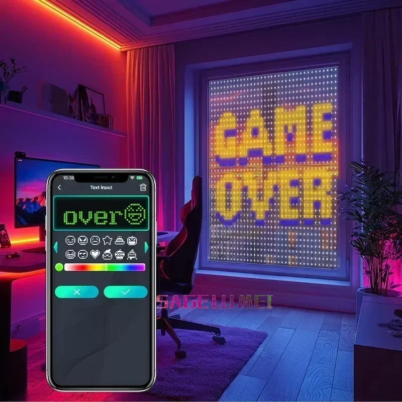 Lumières de rideau intelligentes avec des motifs modifiables de bricolage: En plus des motifs prédéfinis, vous saisissez tout texte ou motif que vous souhaitez afficher, qui peut être affiché de manière dynamique. Les lumières intelligentes de rideau de 6.56x6,56 pieds LED font des polices, des images, des couleurs et des copies intéressantes pour parfaire votre imagination, ajouter plus de dimension à votre