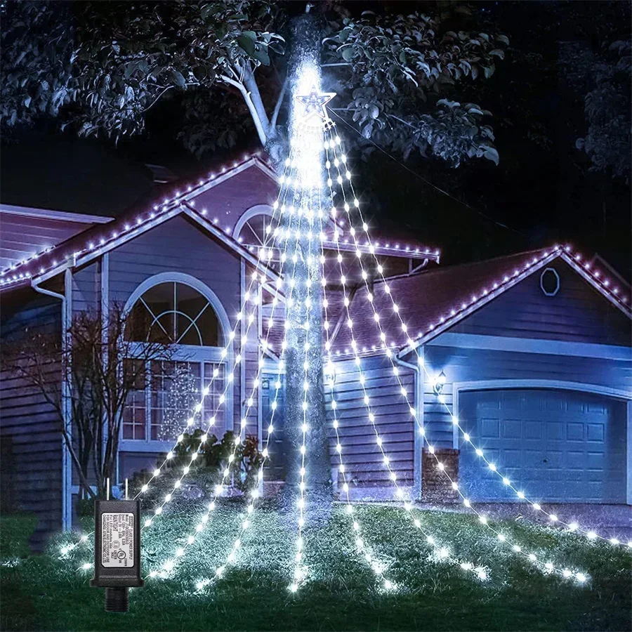 9X3M 288LED extérieur Noël cascade étoile guirlande lumineuse éclairée cascade arbre suspendu guirlande lumineuse Topper étoile fée lumière