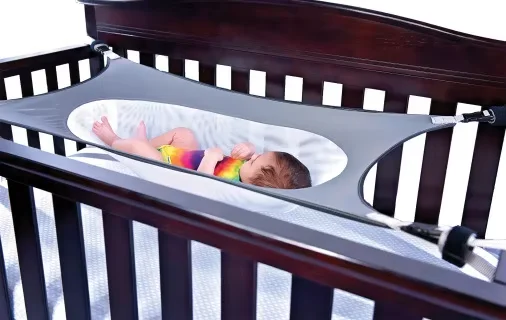 1. Ce hamac nouveau-né se fixe au berceau de votre bébé et est conçu pour aider à réduire les risques environnementaux associés au syndrome de mort subite du nourrisson (SMSN).
