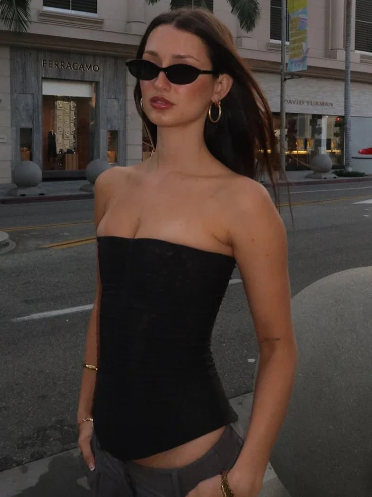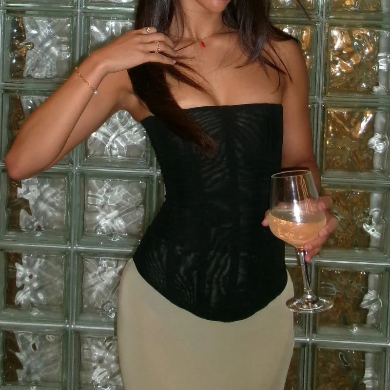 Haut Corset taille haute en arête de poisson pour femmes, moulant, sans manches, gilet en maille, t-shirt Y2K, couleur unie, débardeur Sexy, été