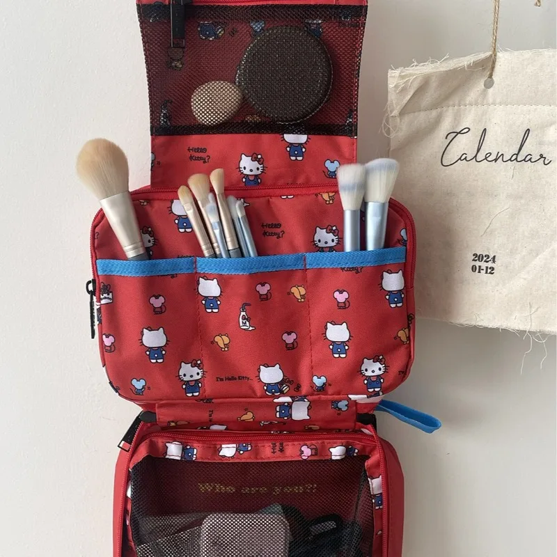 Hellokitty – trousse à cosmétiques pliante, sac de rangement pratique multicouche, trousse de toilette Portable pour étudiants, sorties de voyage