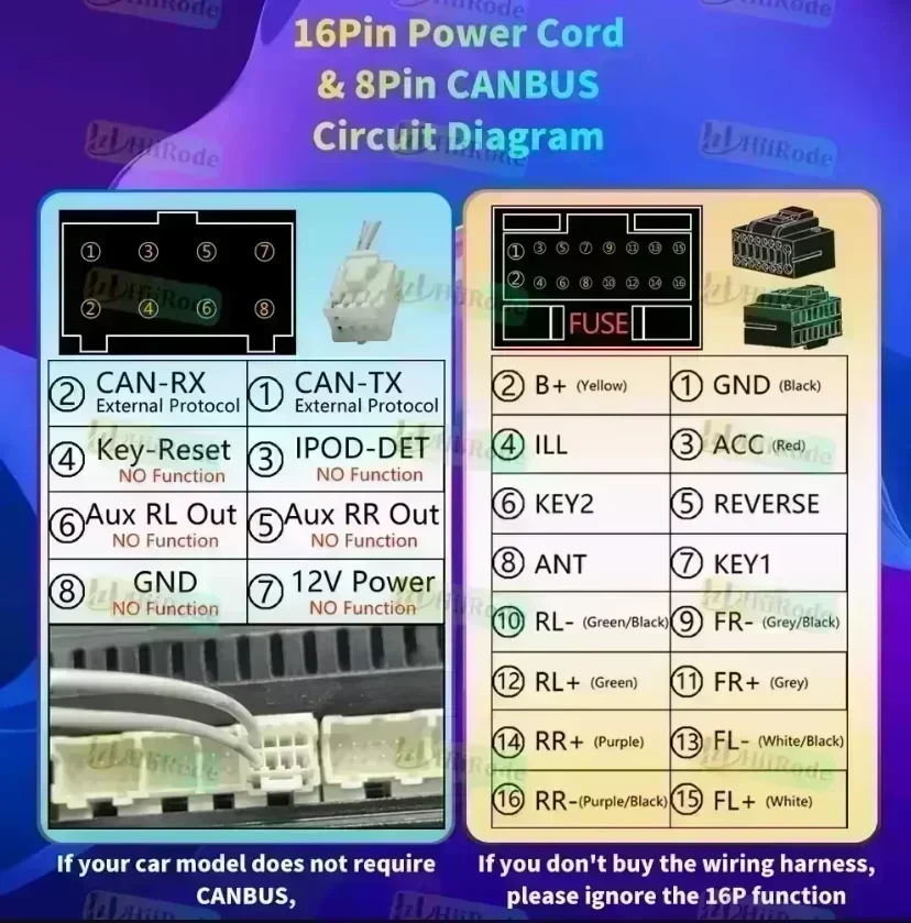 Pour le harnais avec botier de protocole CANbus, vous devrez peut-être entrer les paramètres d'usine de l'hôte Android pour sélectionner la marque et le modèle CANbus correspondants. Il est recommandé de mettre à jour vers la dernière version du MCU.