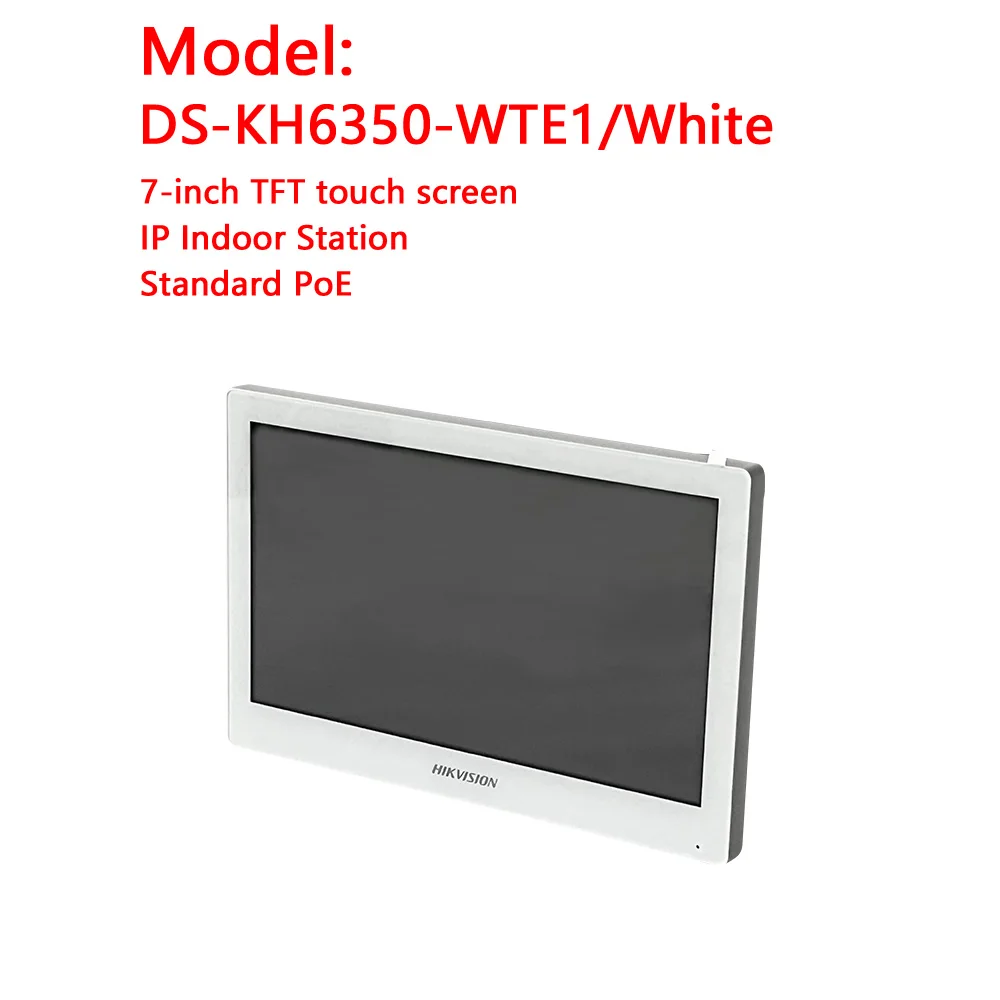 Interphone vidéo Original Hikvision DS-KH6350-WTE1, Station intérieure, écran tactile coloré de 7 pouces, PoE Standard