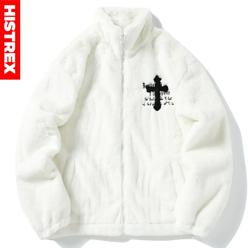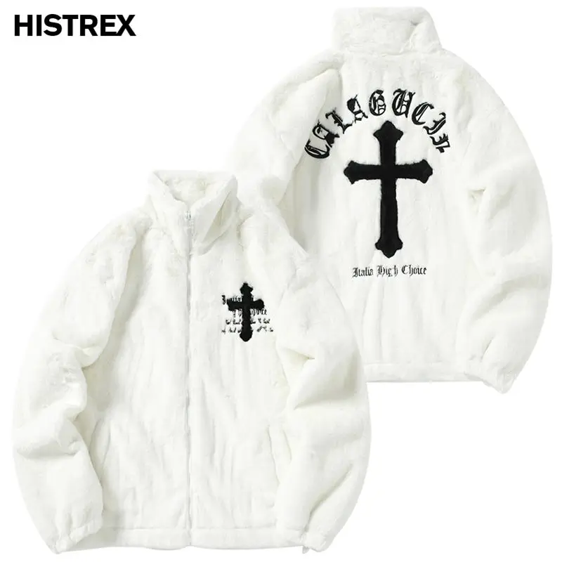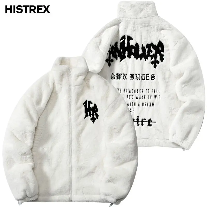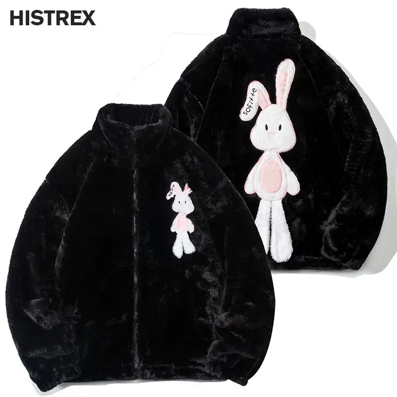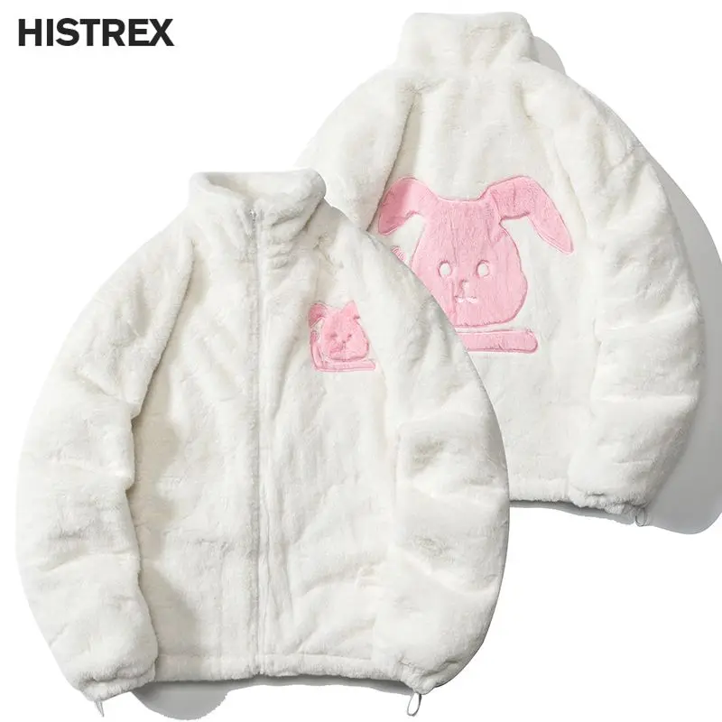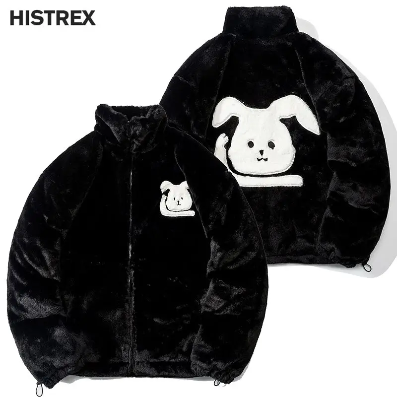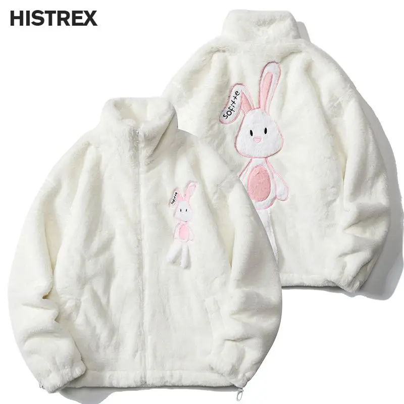 HISTREX -Parkas veste en fourrure de lapin pour hommes, manteau moelleux Hip Hop, pardessus en polaire d'hiver, Streetwear Harajuku, vêtements coréens Y2k